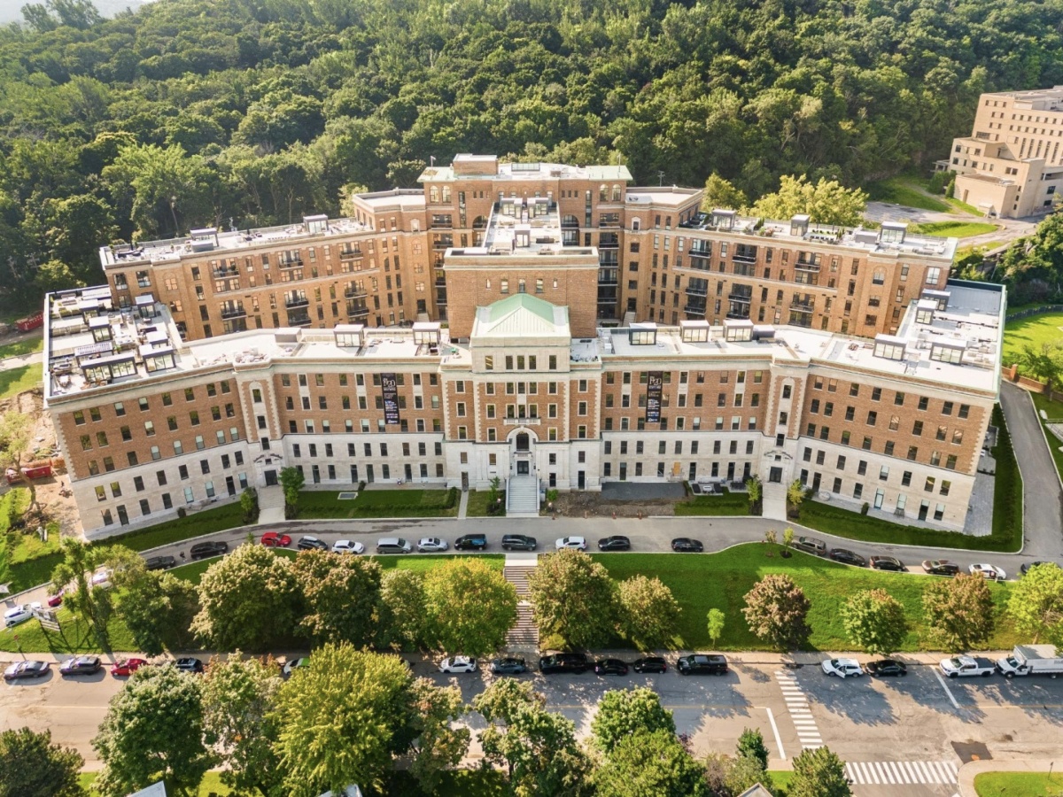 Le vaste appartement se trouve dans un ancien couvent qui a été construit il y a un siècle, en 1924. Le bâtiment est l’ancienne maison mère de la congrégation des Sœurs des Saints Noms de Jésus et de Marie. Environ 500 religieuses ont fréquenté ce lieu.