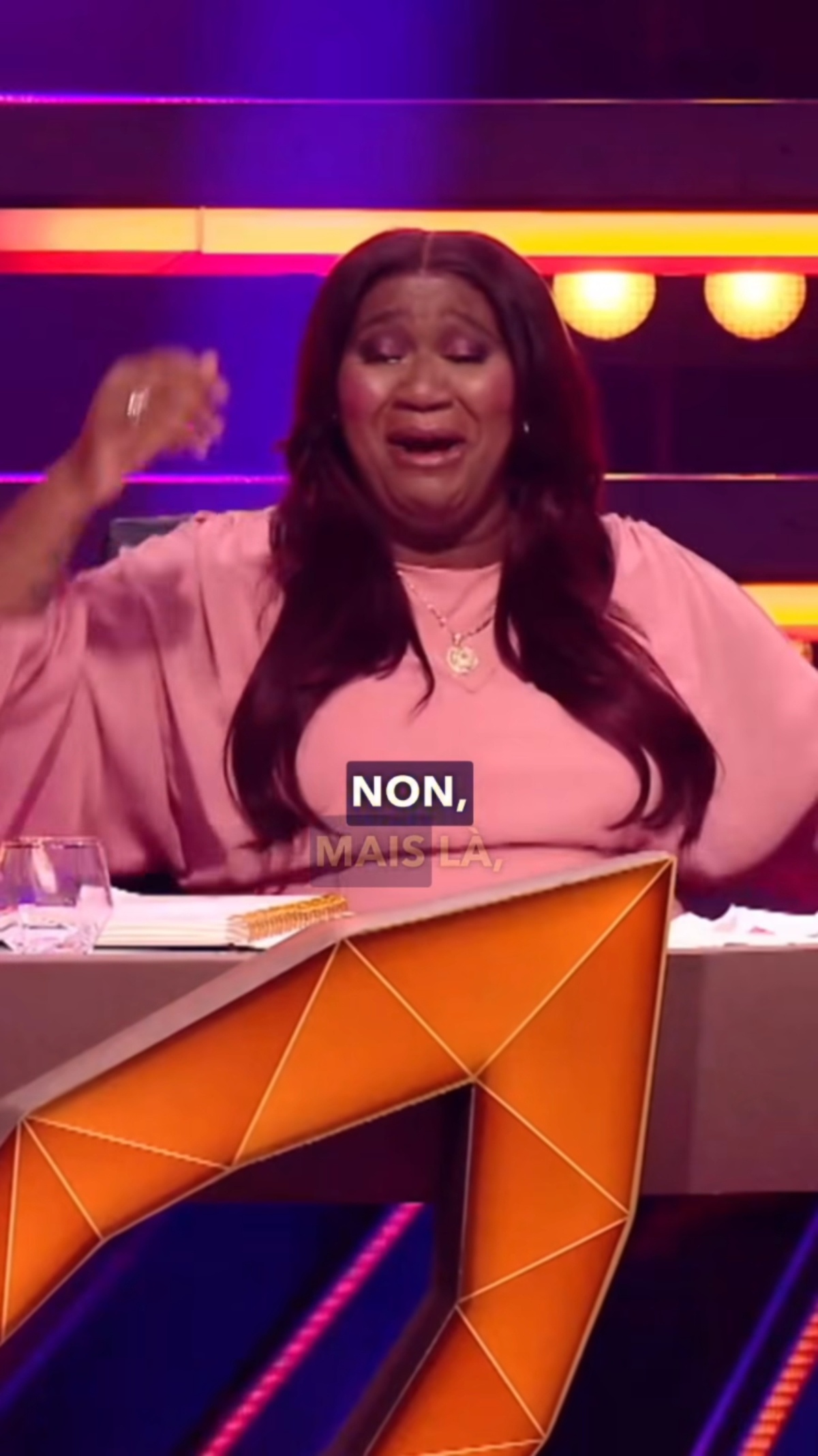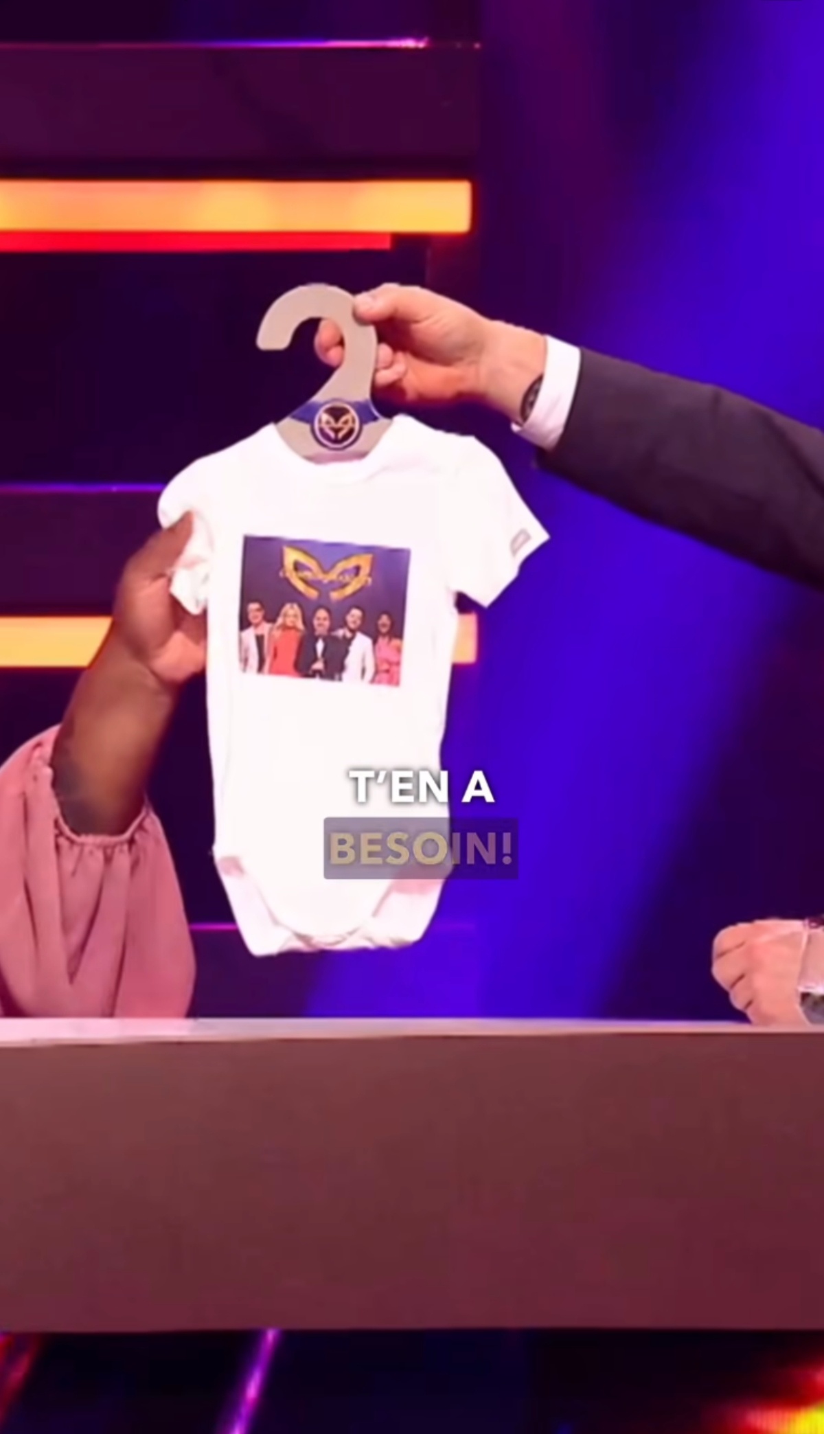 Mélissa Bédard est de retour en tant que juge et enquêtrice pour la très populaire émission Chanteurs masqués. Alors qu’elle était en ondes, l’humoriste et comédien Stéphane Rousseau lui a tendu un cadeau. Il s’agit d’un cache-couche pour son bébé Aaron qui est né en mars 2025. D’ailleurs, une photo de ses collègues et elle a été imprimée sur le petit vêtement.