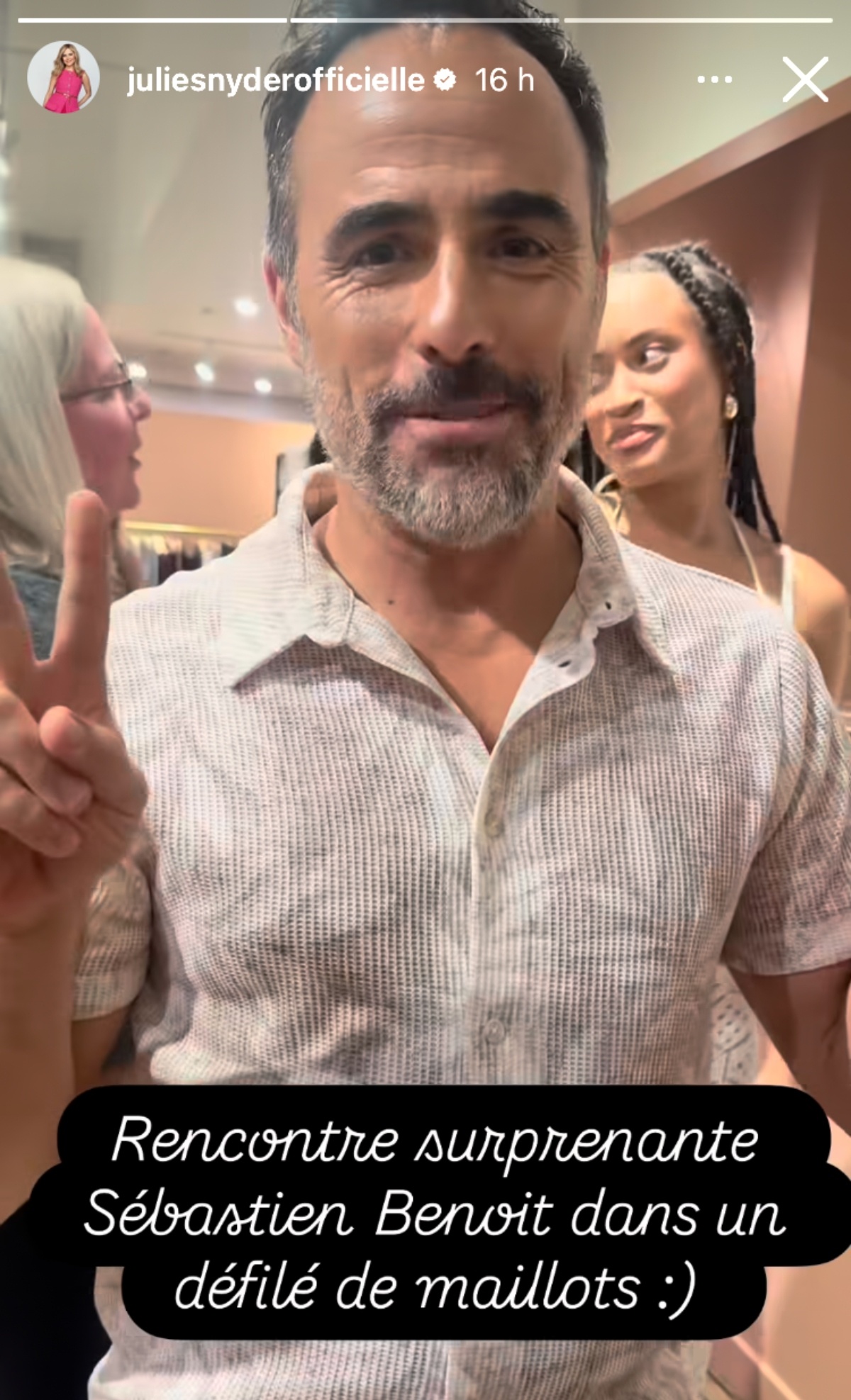 Alors que Julie Snyder est venue encourager sa fille dans les coulisses, elle est tombée sur une personnalité connue au Québec. En effet, l’animateur Sébastien Benoit faisait également partie des mannequins!