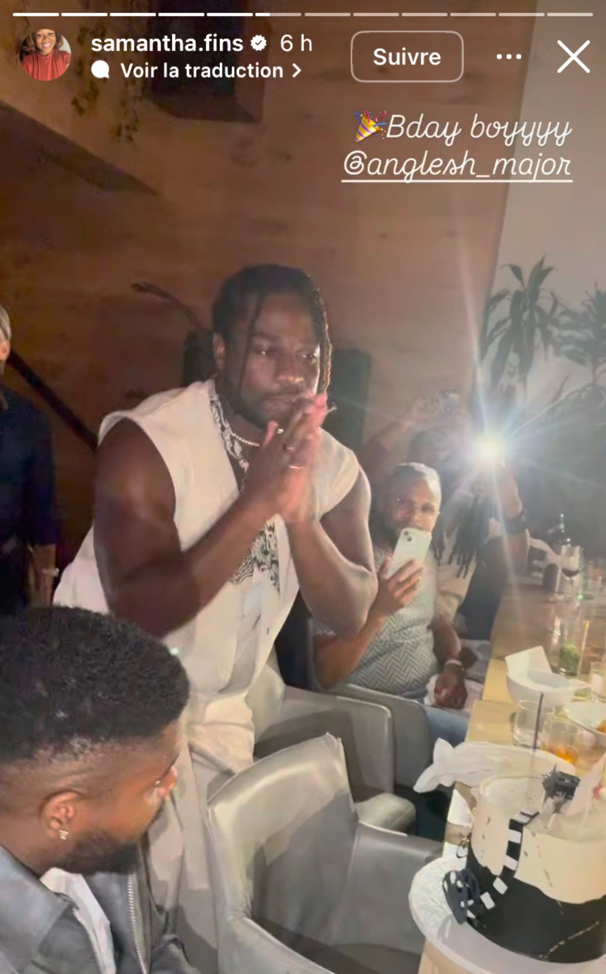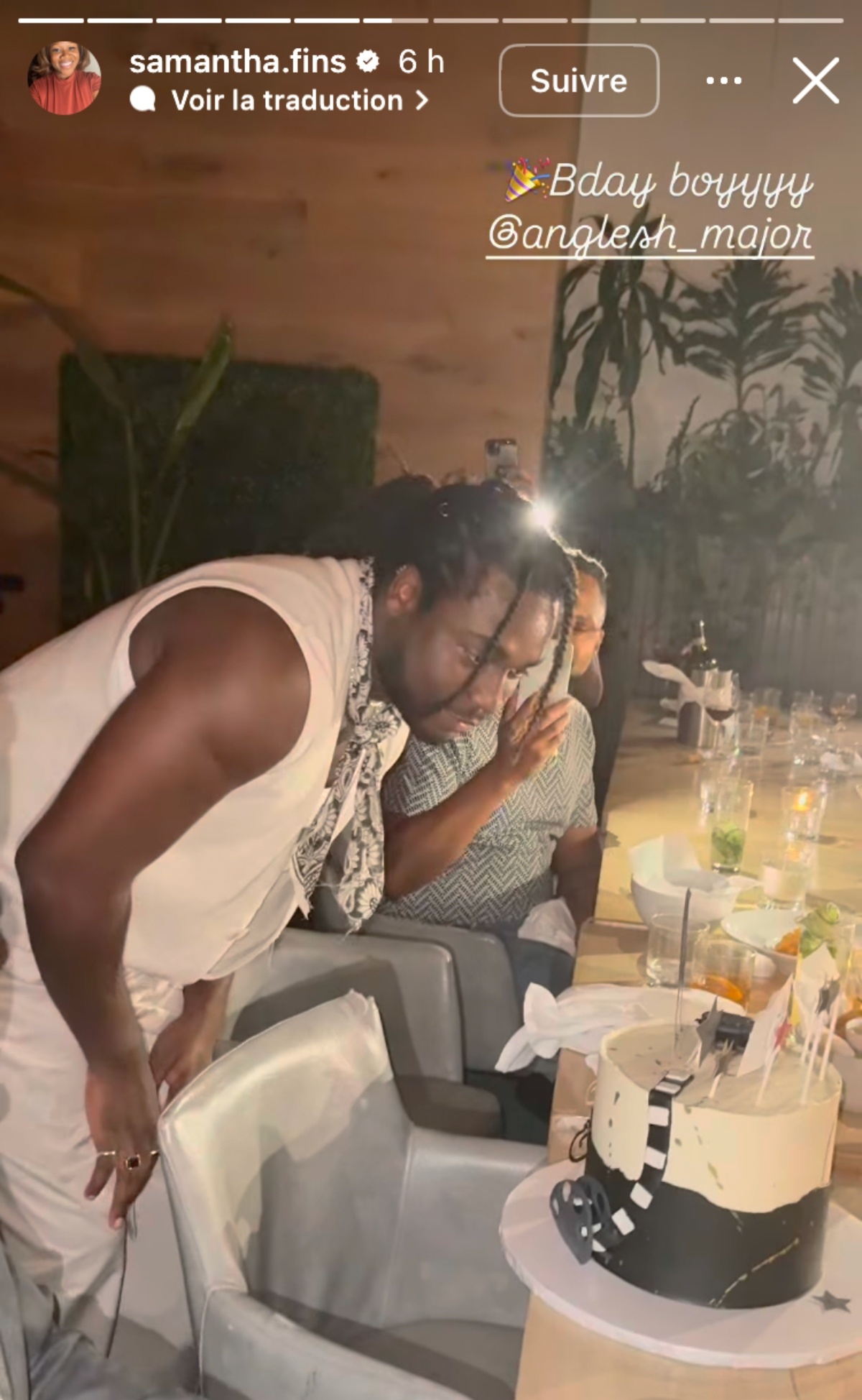 En ce qui concerne Anglesh Major, ce dernier était particulièrement élégant pour son anniversaire. Il portait un ensemble beige clair, soit un pantalon fluide et une veste sans manche. Afin de compléter son look sophistiqué, il a ajouté un foulard autour de son cou en plus de quelques bagues argentées comme bijoux.