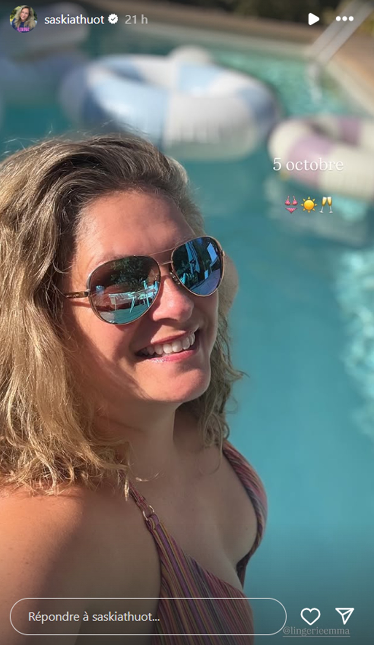 Par ailleurs, Saskia a pris la pose en maillot le 5 octobre