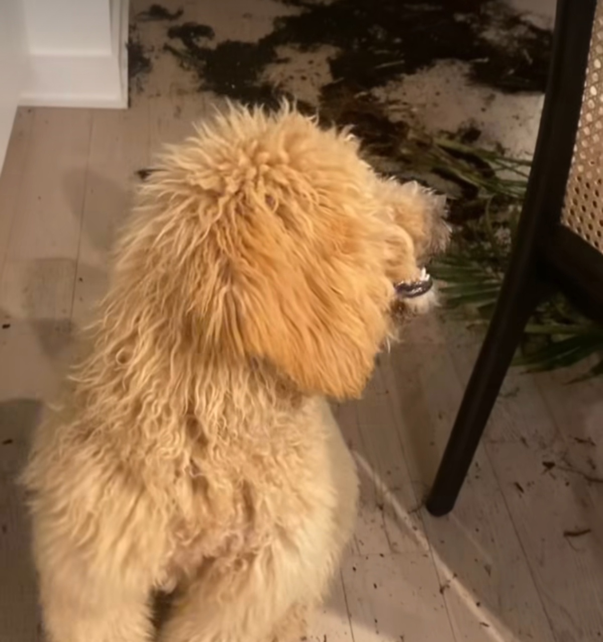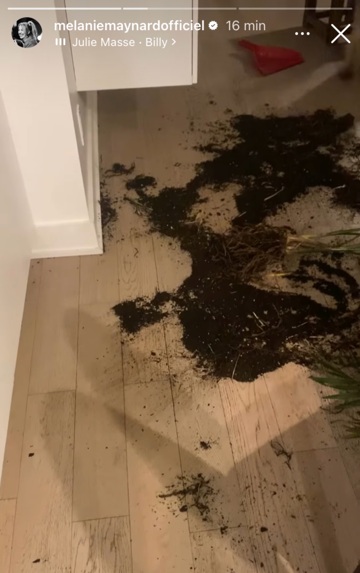 Or, en rentrant à la maison, Mélanie Maynard a eu une mauvaise surprise! Billie s’est amusé dans ses plantes, ce qui fait en sorte qu’une quantité impressionnante de terre a été étalée sur son plancher. Mentionnons également les petites pattes de l’animal, qui ont été noircies en raison de son activité!