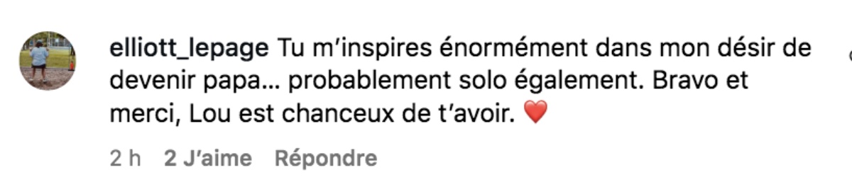« Tu m’inspires énormément dans mon désir de devenir papa… probablement solo également. Bravo et merci, Lou est chanceux de t’avoir. ❤️ »
