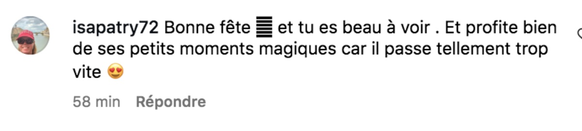 « Bonne fête, et tu es beau à voir . Et profite bien de ses petits moments magiques car il passe tellement trop vite 😍 »