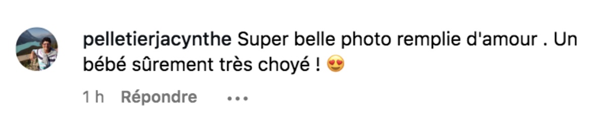 « Super belle photo remplie d’amour . Un bébé sûrement très choyé ! 😍 »