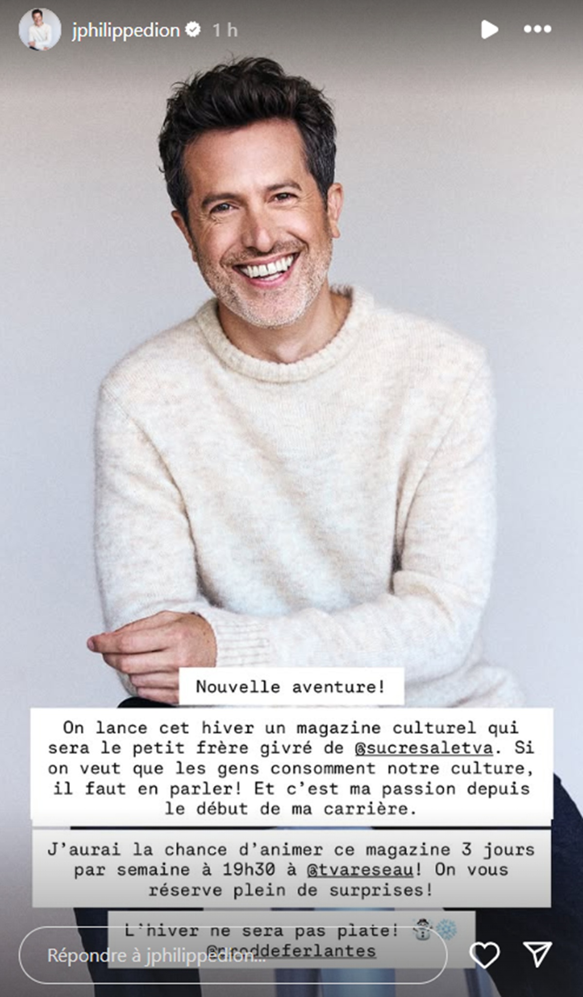 On souhaite bon succès à Jean-Philippe Dion aux commandes de sa nouvelle émission qui débutera à l’hiver 2026 sur les ondes de TVA.