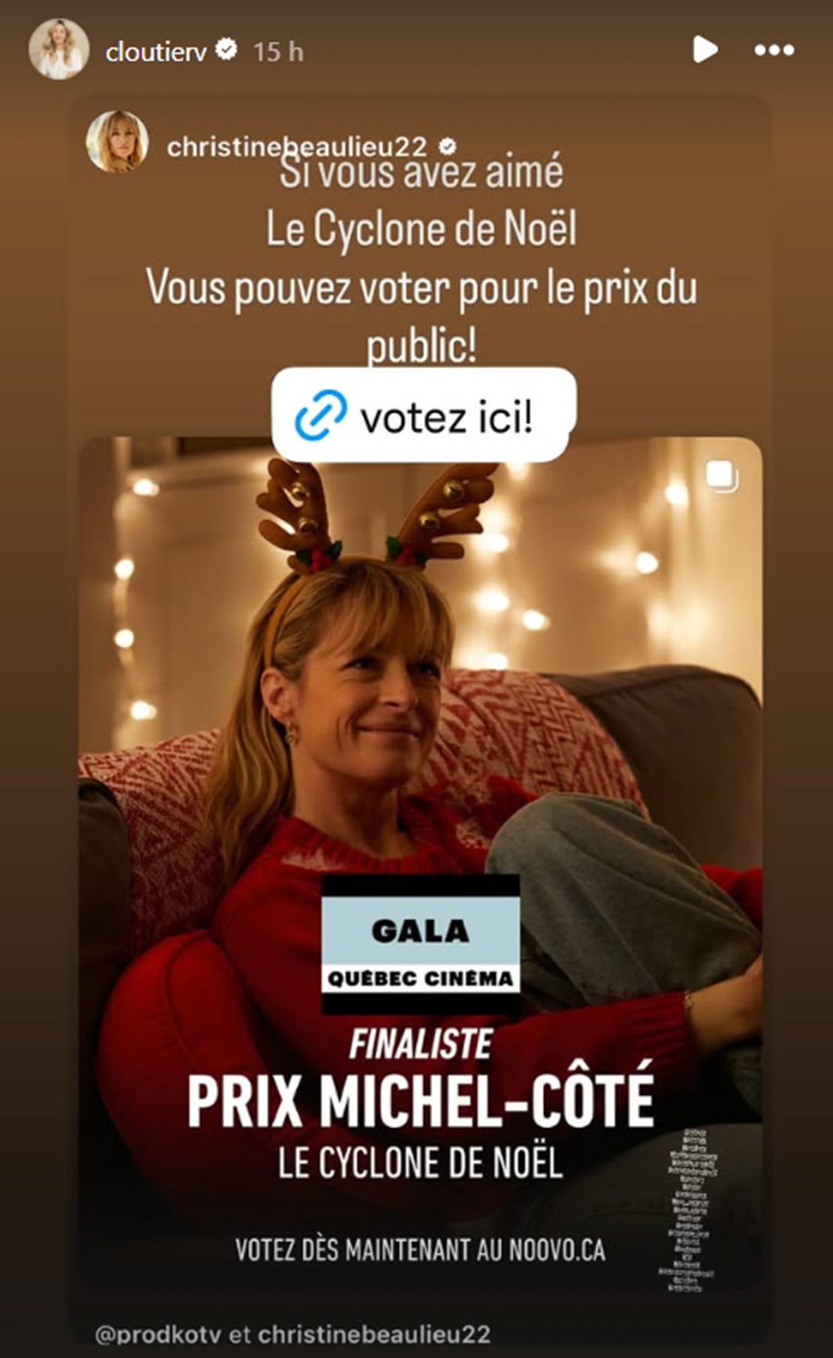 Ils ont demandé à leurs fans d’aller voter pour le film Le cyclone de Noël pour le Prix Michel-Côté du Gala Québec Cinéma.