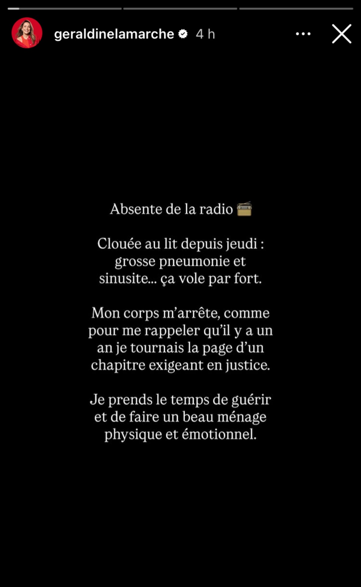 Géraldine Lamarche a dû s’absenter de son poste à la radio en raison de problème de santé.