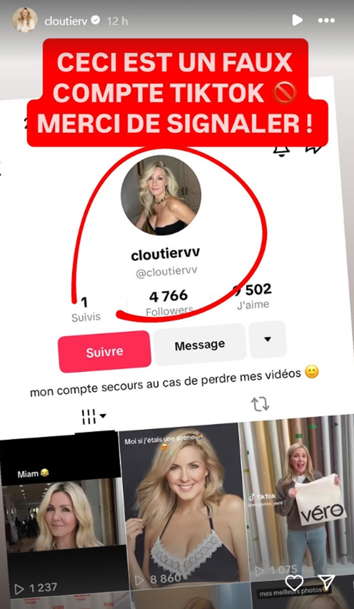 Par ailleurs, Véronique Cloutier a fait une sortie sur les réseaux sociaux afin de mettre en garde les internautes.
