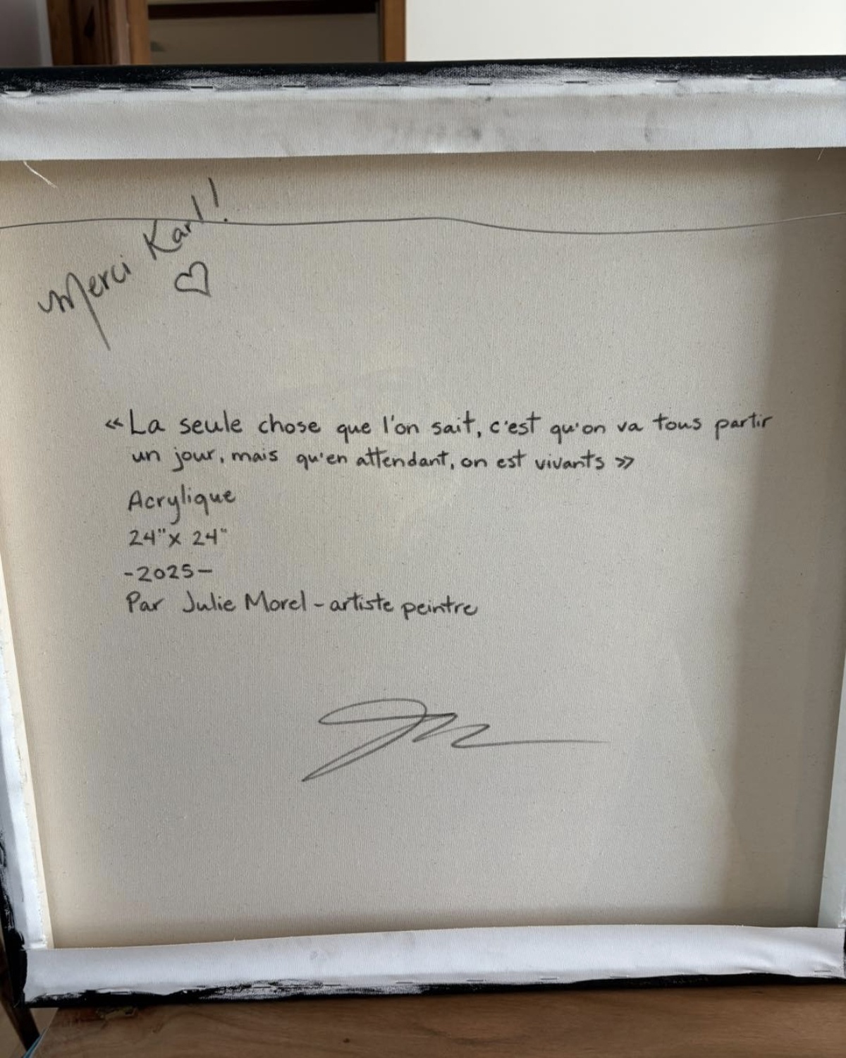 Dans son long message, elle mentionne à quel point Karl Tremblay était un homme généreux, aimable sensible et heureux.