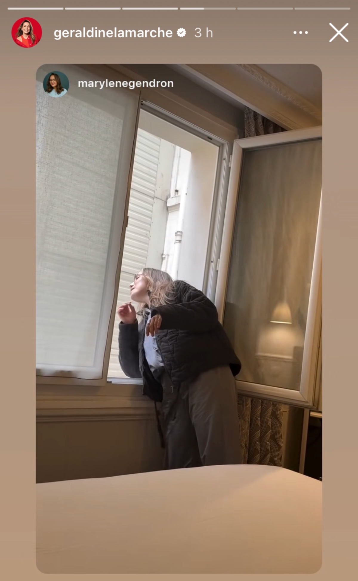 Mentionnons qu’elle est en compagnie d’une personnalité connue au Québec. En effet, Marylène Gendron est avec elle! D’ailleurs, l’humoriste a publié une vidéo de Géraldine Lamarche, dans laquelle elle parle à la fenêtre avec un accent français.