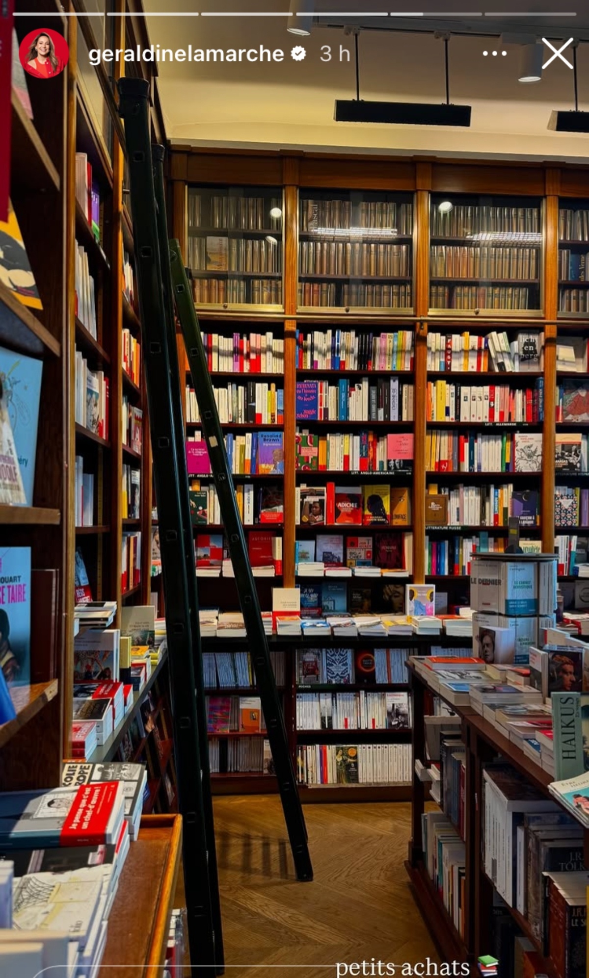Ensuite, elle a publié un cliché d’une jolie librairie où elle mentionne avoir fait de petits achats.