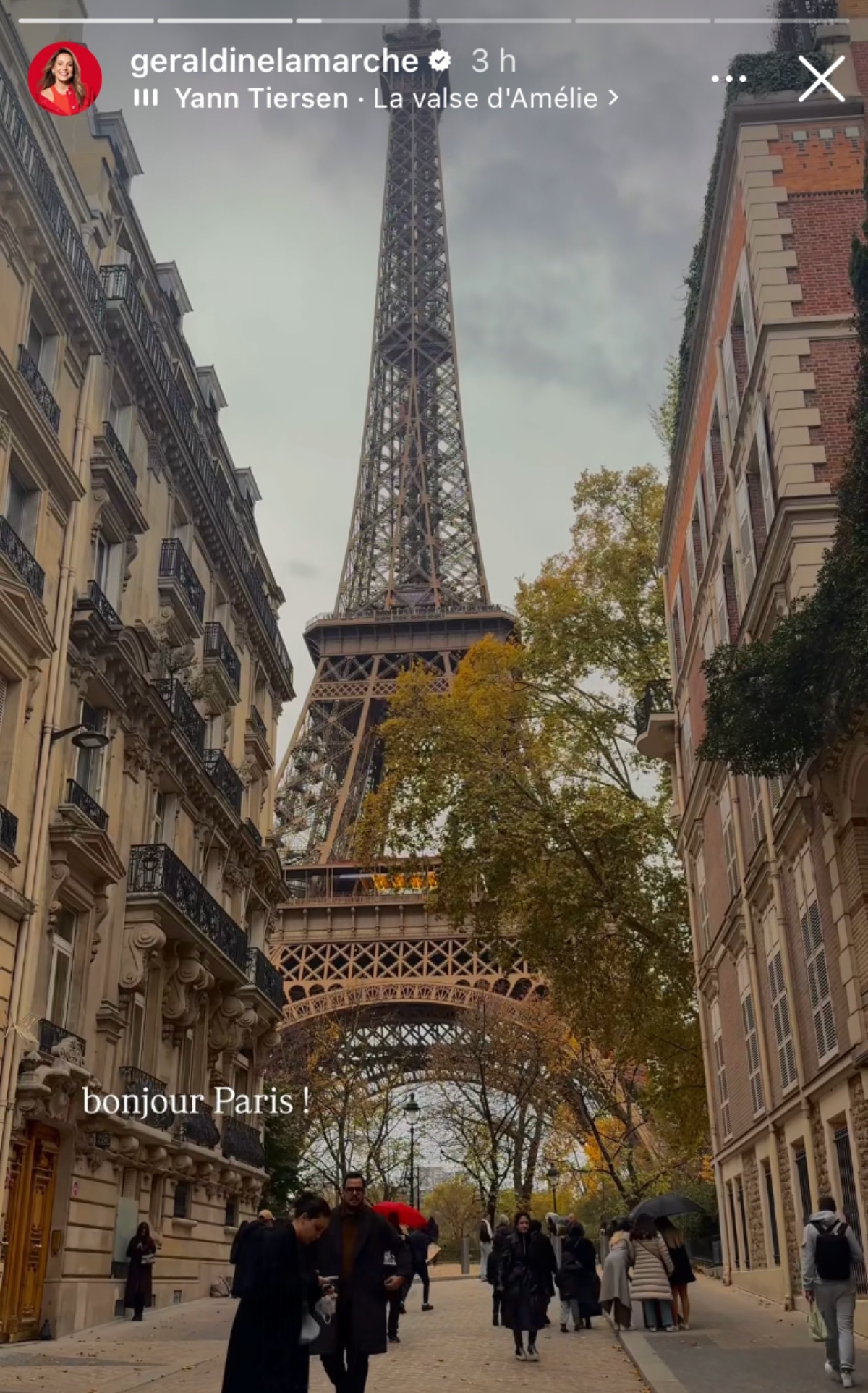 Géraldine Lamarche se trouve présentement en sol européen. Plus précisément, elle est à Paris, la capitale de France.