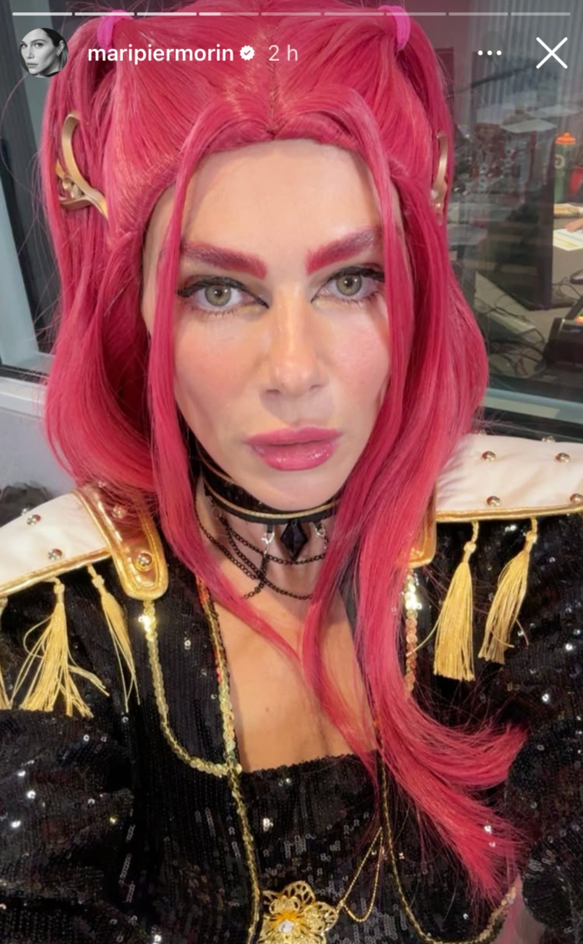 Maripier Morin s’est donc dessiné en Mira, un personnage qui est très reconnaissable en raison de sa longue chevelure rose. Pour ce faire, l’animatrice portait une perruque et elle s’est maquillé les sourcils.