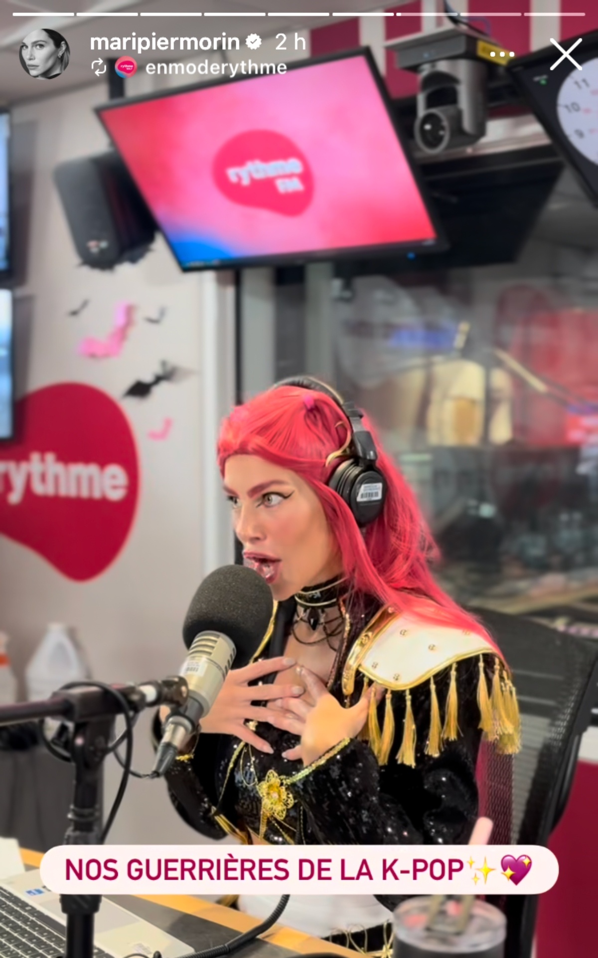 Maripier Morin s’est donc dessiné en Mira, un personnage qui est très reconnaissable en raison de sa longue chevelure rose. Pour ce faire, l’animatrice portait une perruque et elle s’est maquillé les sourcils.