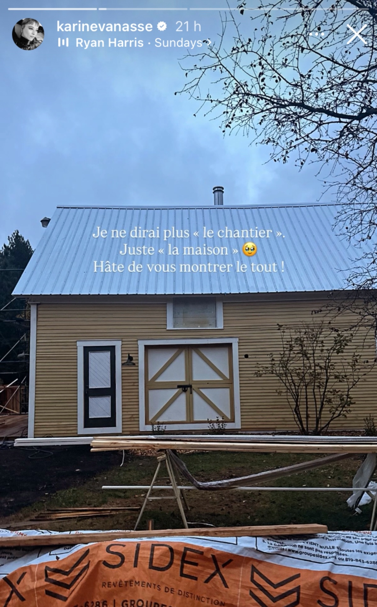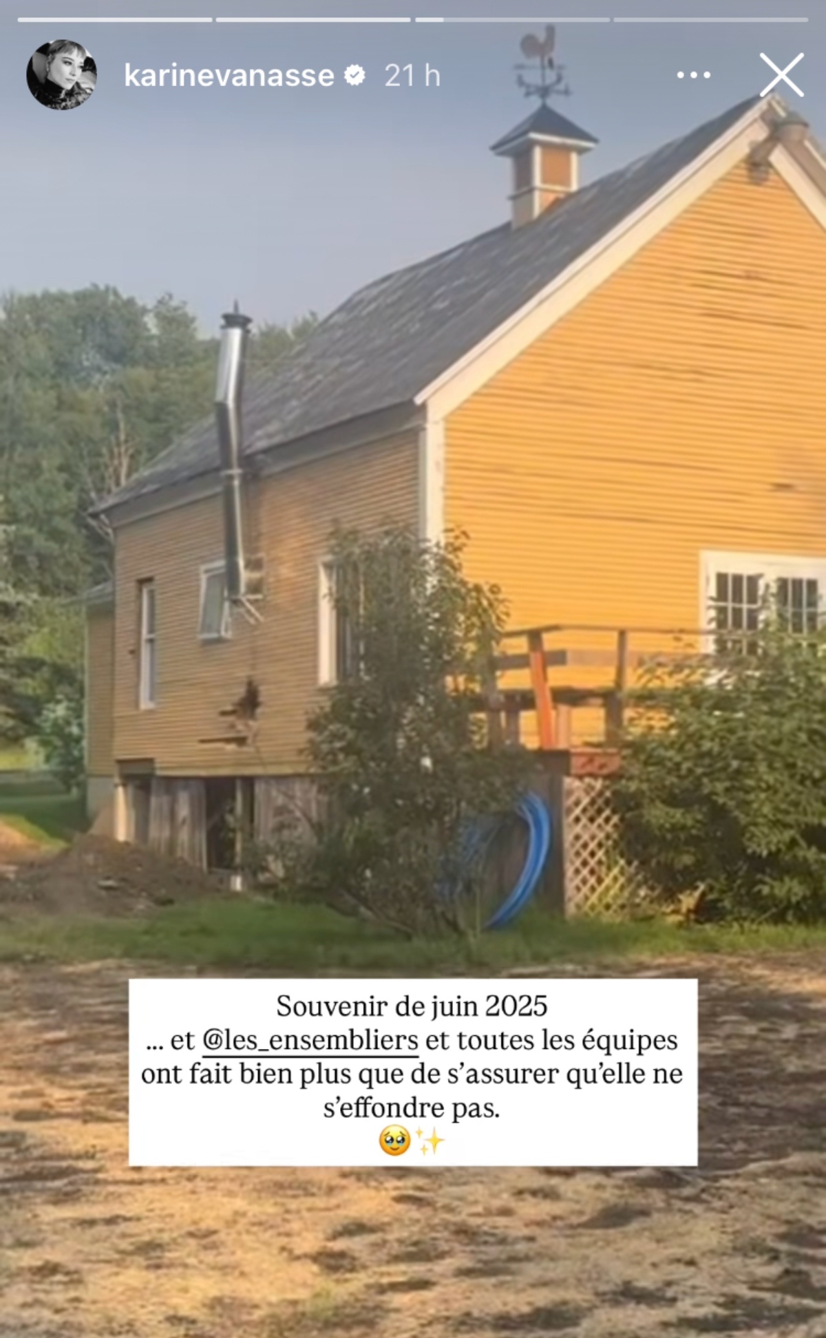 La comédienne Karine Vanasse a annoncé la fin d’un projet important sur sa page personnelle. En effet, elle s’est lancée dans un projet de rénovation d’une maison ancestrale dans les Canton-de-l’Est. D’ailleurs, le processus a été documenté via une série documentaire intitulée Karine et la maison jaune en raison de la couleur de la demeure. Or, la comédienne a annoncé que le chantier est bel et bien terminé!