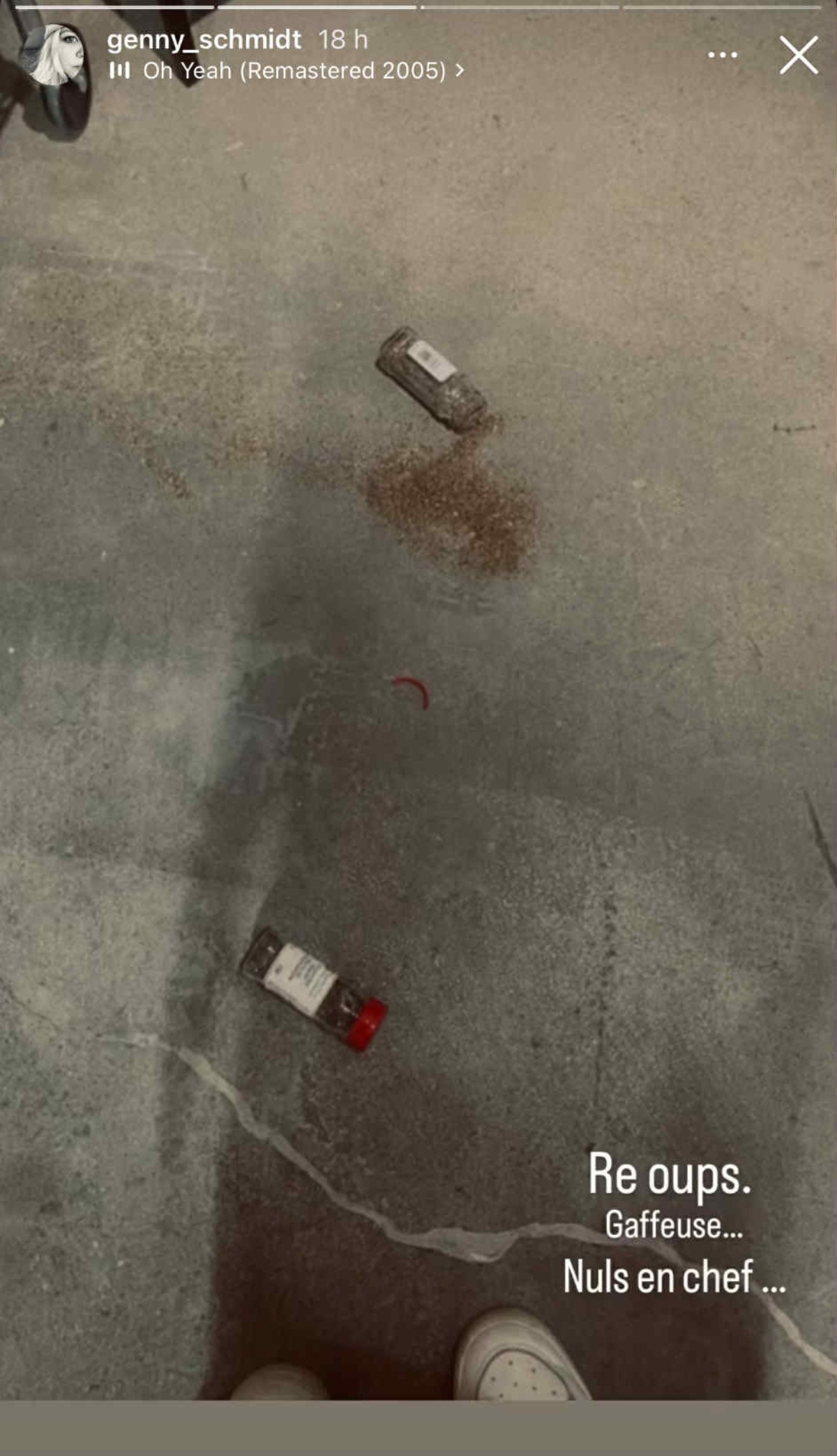 En plus de ce malheureux accident, le plancher de la comédienne a également été victime… Un contenant à épices s’est ouvert sur le sol!