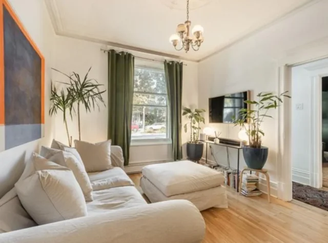 Le condo construit en 1907 comprend trois chambres, un salon double, une grande cuisine rénovée et une salle familiale située au sous-sol.