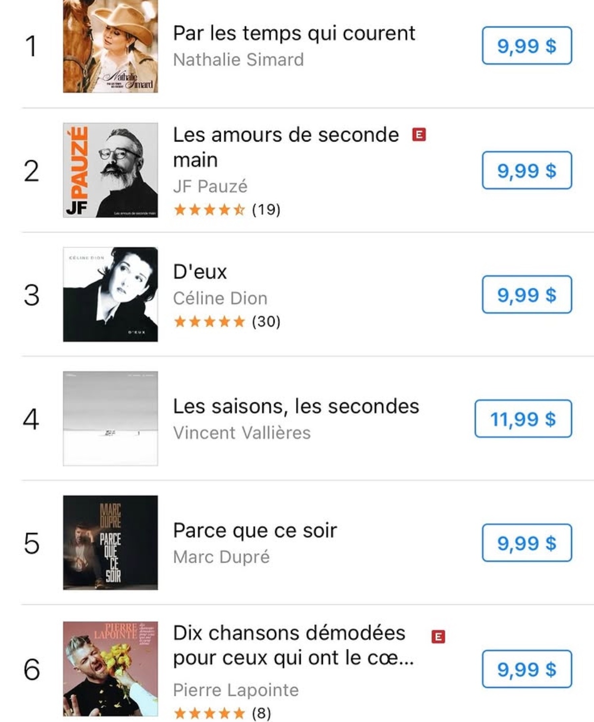 « Quel bonheur de vous annoncer que mon nouvel album country-folk, lancé hier, trône déjà au numéro 1 des ventes!