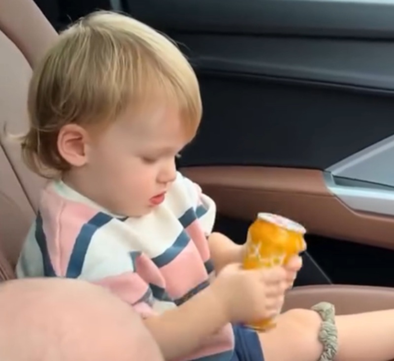 2Cooper dans la voiture alors qu’il joue avec une cannette