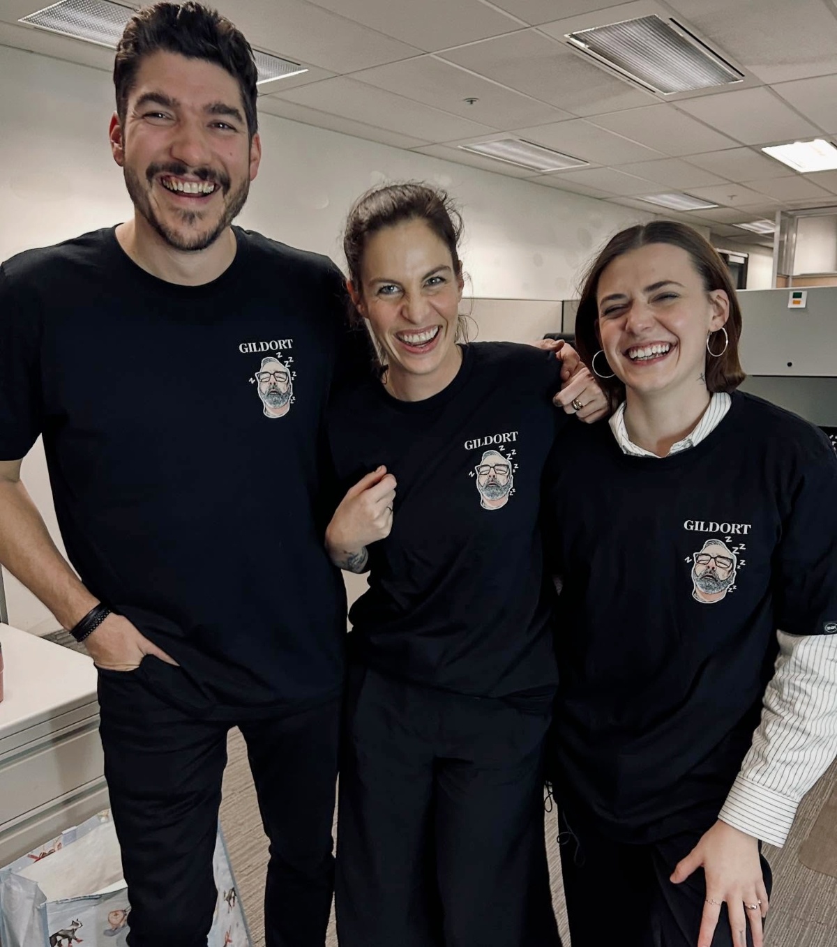 Ils ont donc décidé d’offrir des chandails très originaux à toute l’équipe! Il s’agit de teeshirt noir avec le portrait Gildor Roy endormi. Au-dessus de son visage, un jeu de mots a été imprimé : GILDORT.