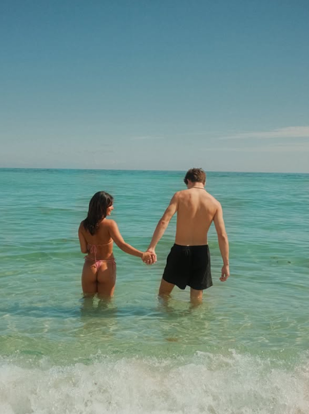 On peut les voir les pieds dans l’eau alors qu’ils sont en maillot de bain. Sur un cliché, ils se donnent un bisou tandis que sur les deux autres, les amoureux sont main dans la main et ils ont l’air tellement complices.