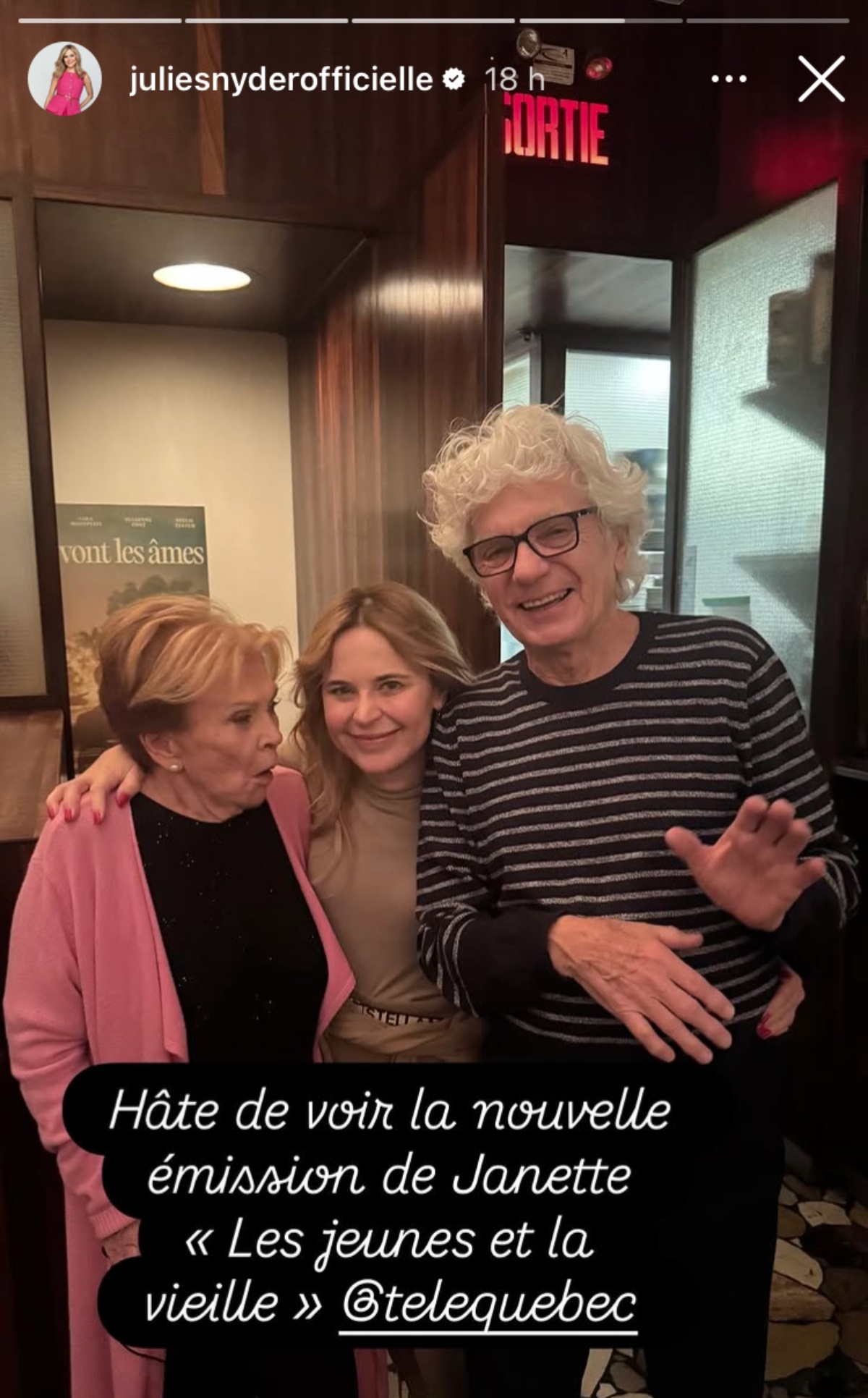 Sur sa deuxième publication, la productrice Julie Snyder fait référence au plus récent projet de la centenaire. Janette – Les jeune et la vieille est une émission dans laquelle Janette Bertrand a des conversations intergénérationnelles avec des jeunes âgés de 11 à 21 ans.