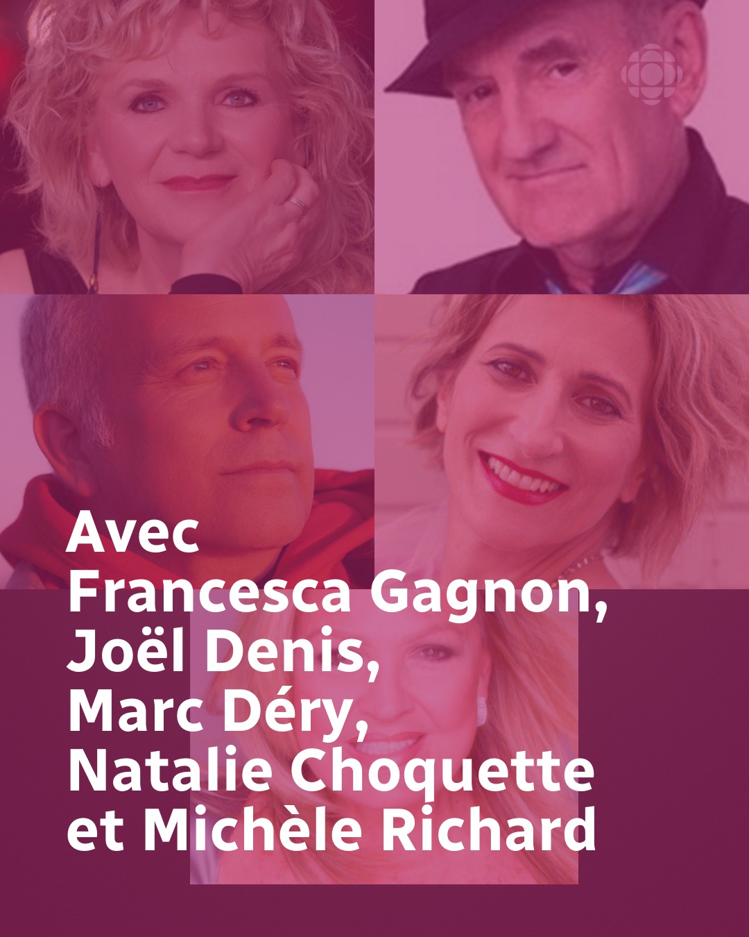Finalement, chez les Boomers, Francesca Gagnon, Joël Denis, Marc Déry, Natalie Choquette et Michèle Richard monteront sur scène pour essayer de rallier toutes les générations.