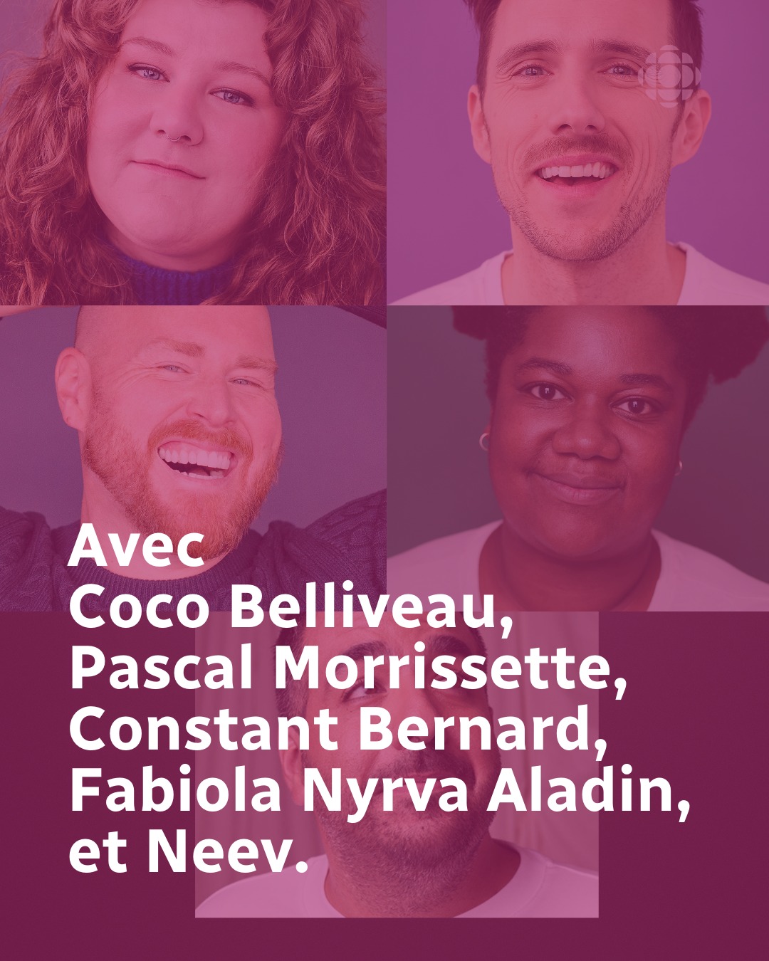 Chez les Y, on y retrouvera Coco Belliveau, Pascal Morrissette, Constant Bernard, Fabiola Nyrva Aladin et Neev.