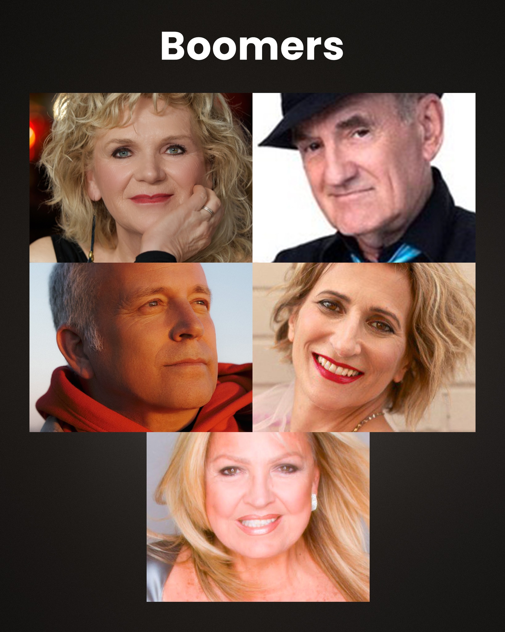 Finalement, chez les Boomers, Francesca Gagnon, Joël Denis, Marc Déry, Natalie Choquette et Michèle Richard monteront sur scène pour essayer de rallier toutes les générations.
