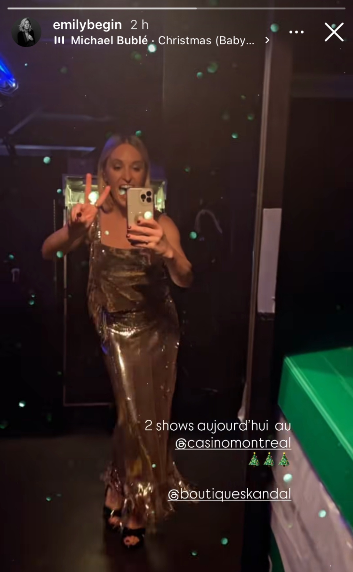 En plus d’être une chanteuse et comédienne très douée, Émily Bégin est connue pour oser des looks très originaux. Avec le temps des Fêtes qui approche à grands pas, c’est le moment idéal pour plusieurs de sortir leurs habits chics et scintillants… Et c’est également le cas de l’artiste!