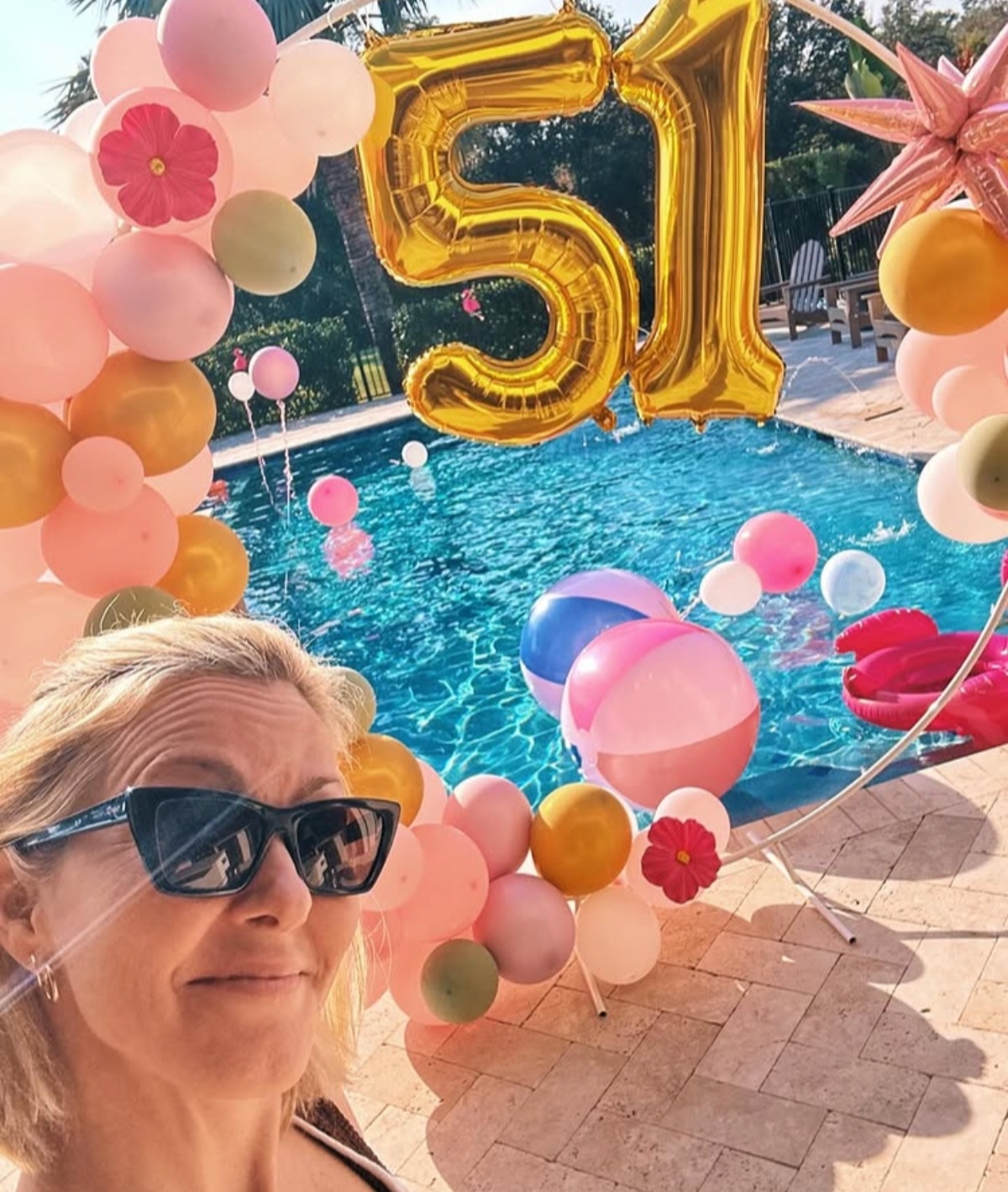 Enfin, Véronique Cloutier a pris la pose seule avec les décorations. On peut la voir profiter de la belle température près de la piscine qui a elle aussi été remplie de ballons.