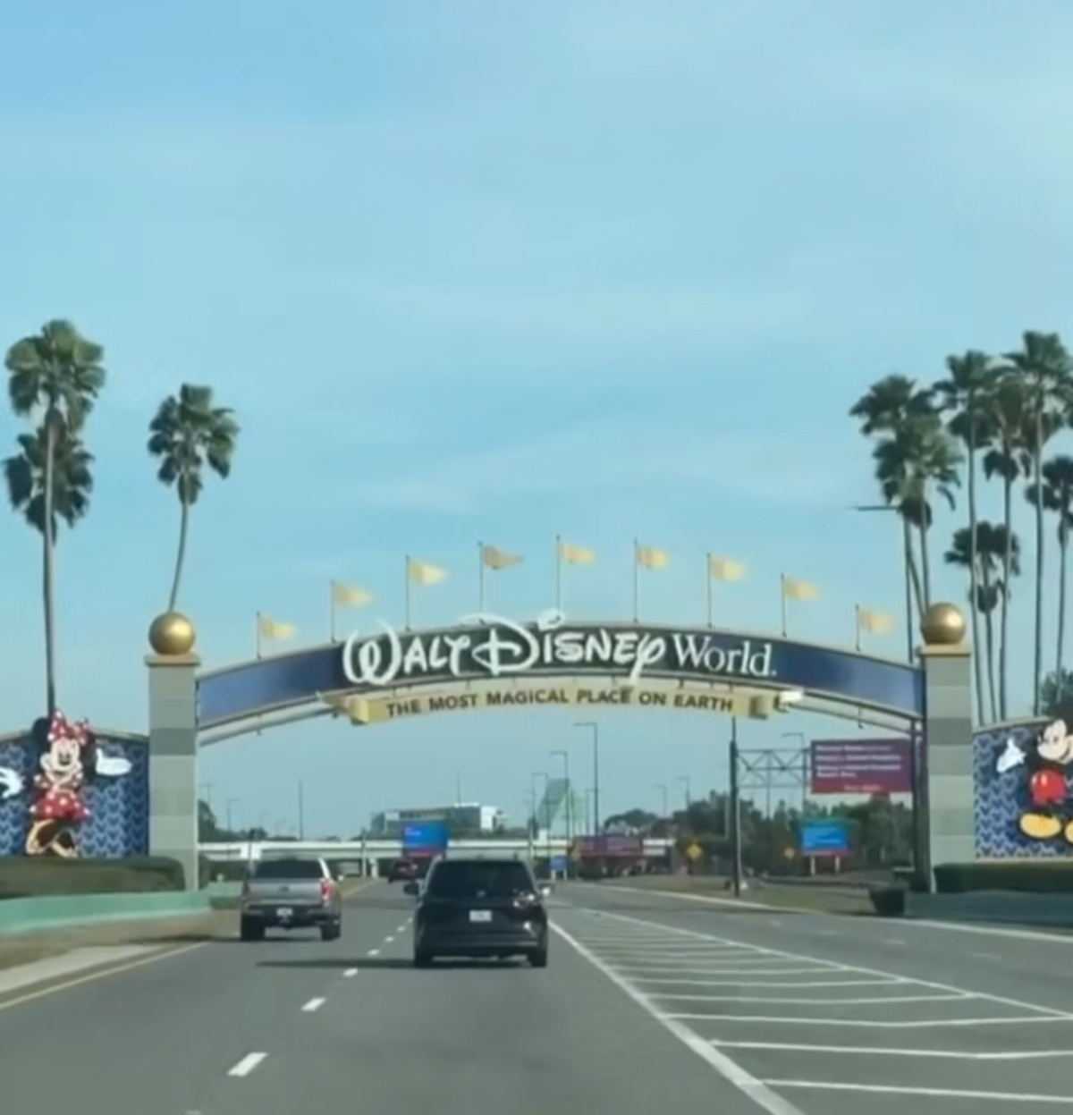 D’abord, elle a filmé la route vers le fameux parc Walt Disney World. Mentionnons qu’il s’agit du plus grand parc d’attractions qui appartient à Disney.