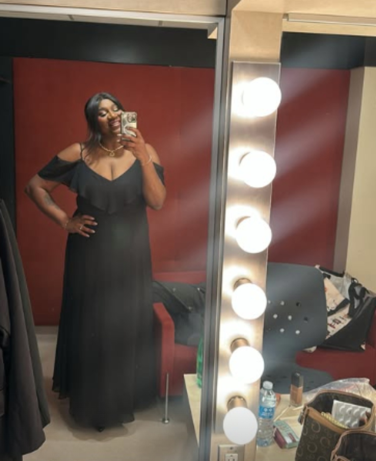 En effet, la chanteuse a partagé des images de son look pour une soirée au Grand Théâtre.