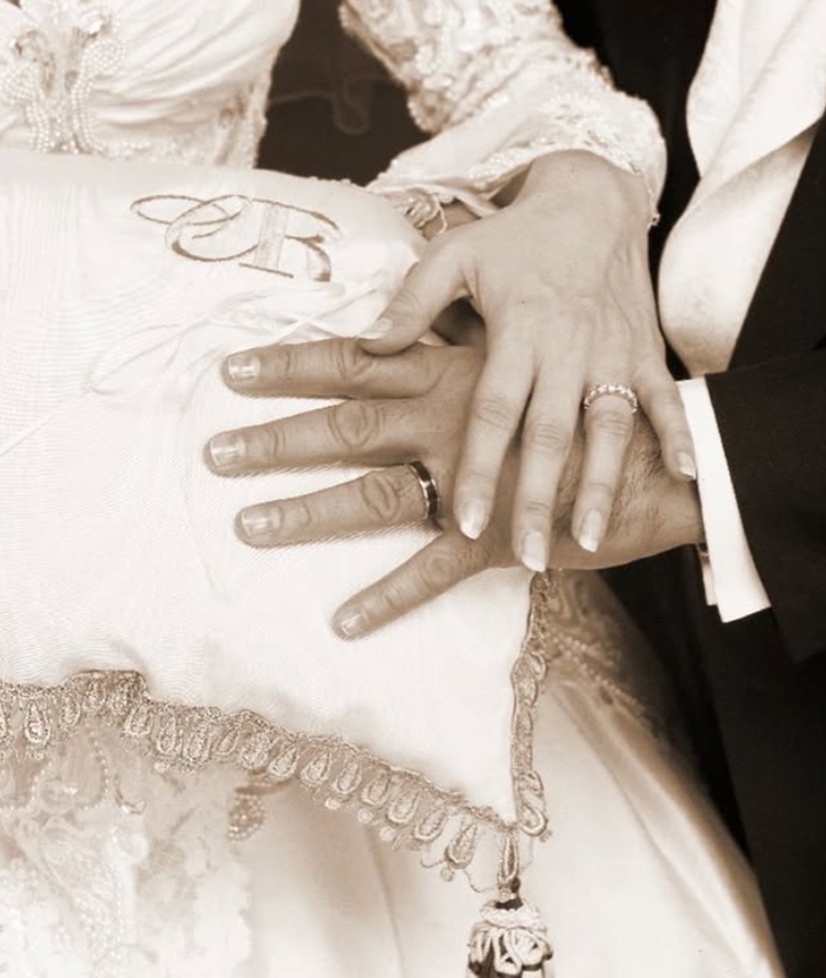 On aperçoit aussi très bien le jonc de mariage de René dans l’annulaire de sa main gauche ainsi que celui de Céline dans le même doigt de sa main gauche.