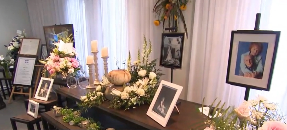 Une rétrospective composée de photos et de coupures de journaux a été mise en place pour rendre hommage à la défunte.