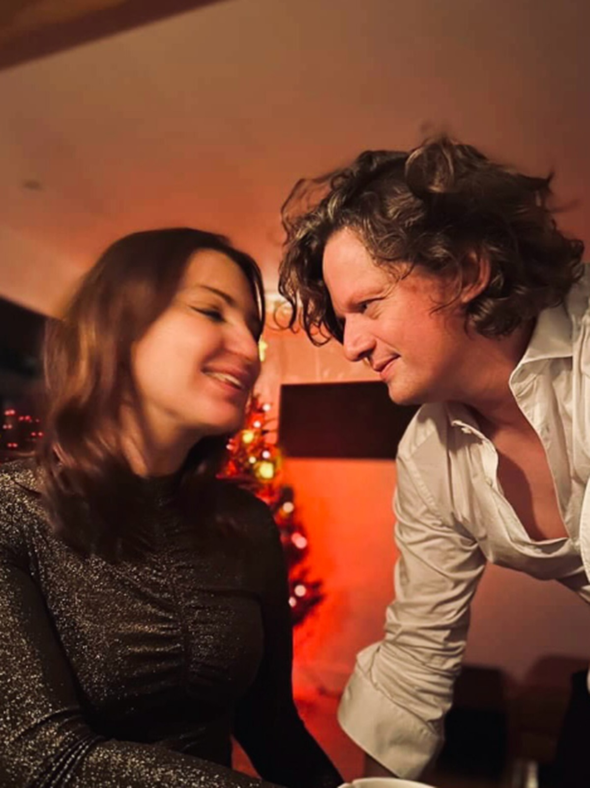 Geneviève Pettersen et son chum Pierre-Yves McSween devant leur sapin de Noël