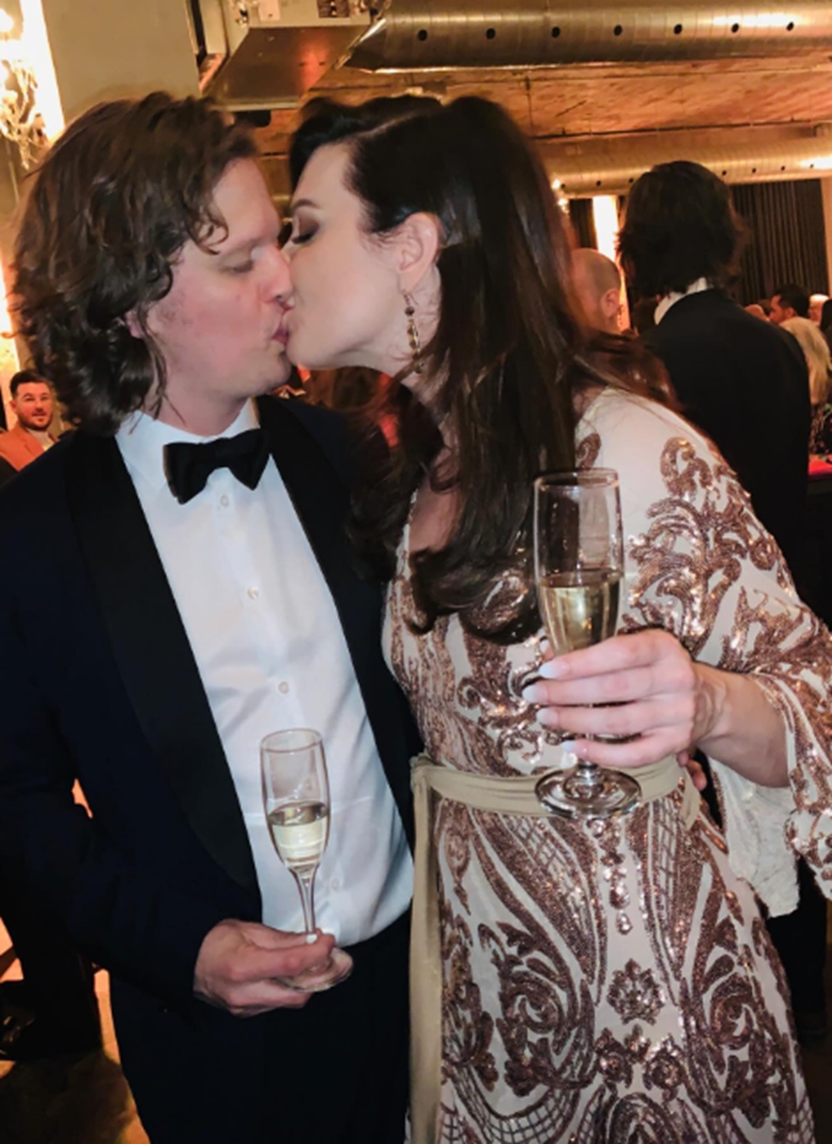Pierre-Yves et Geneviève qui se donnent un bisou durant une soirée spéciale
