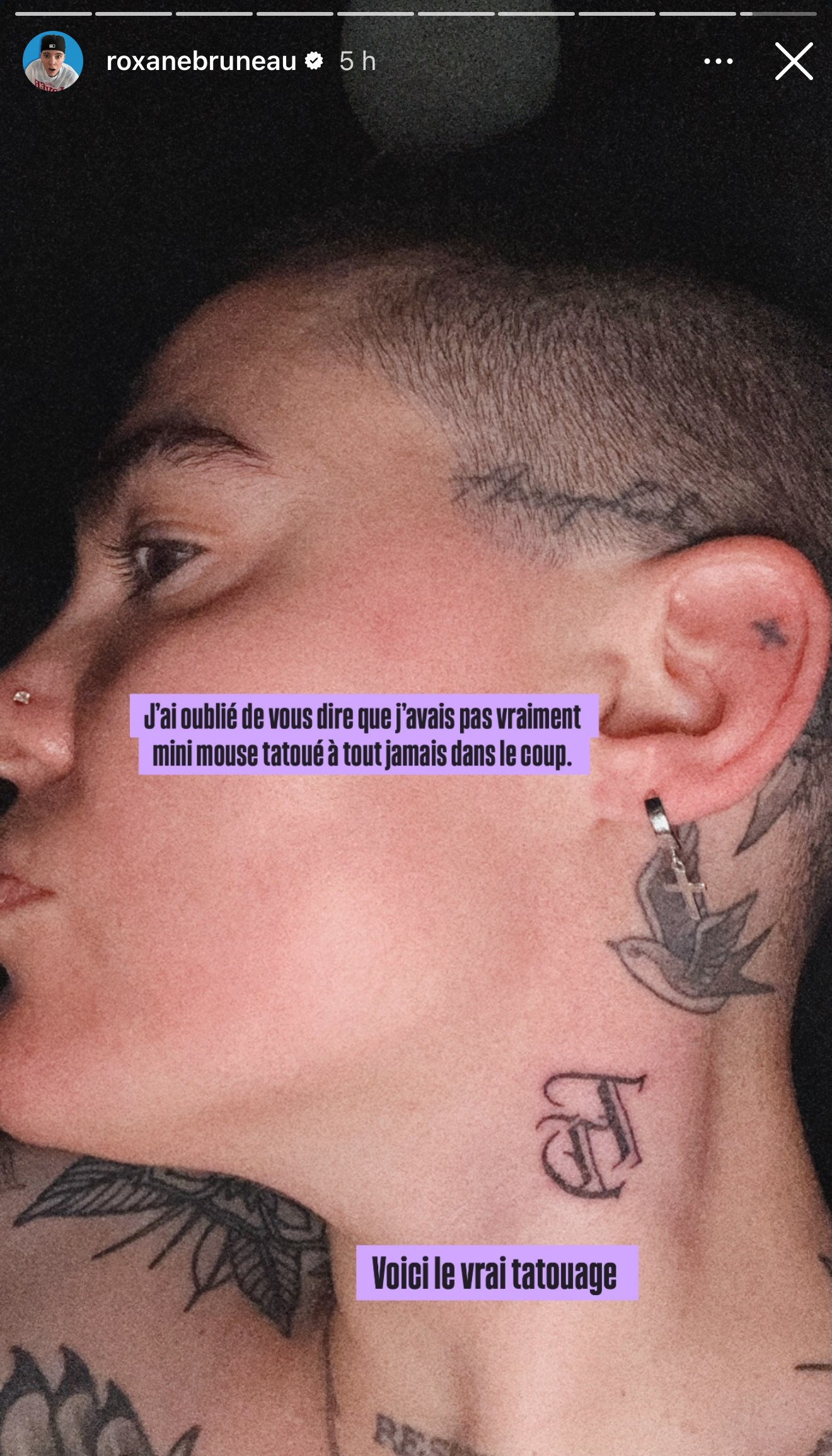 Mise à jour : Voici le vrai tatouage de Roxane dans le cou… C’était une blague de Mikey.