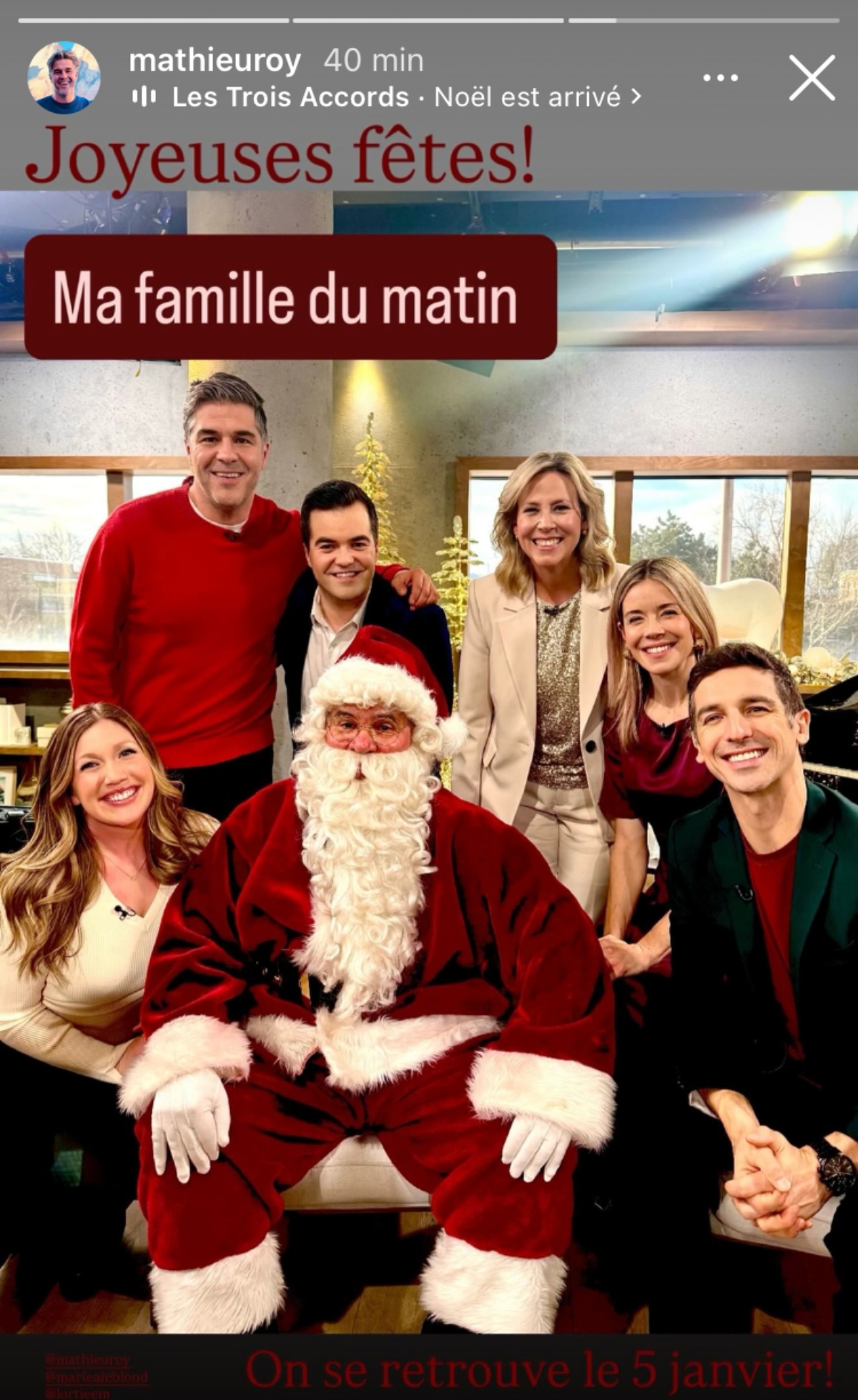 Après avoir accompagné les Québécois et Québécoises chaque matin, l’équipe de Salut Bonjour se prépare à prendre des vacances bien méritées. En effet, ils prennent une pause jusqu’au 5 janvier prochain. Pour souligner cette occasion spéciale, le chroniqueur Mathieu Roy a publié une photo de toute l’équipe sur les réseaux sociaux.
