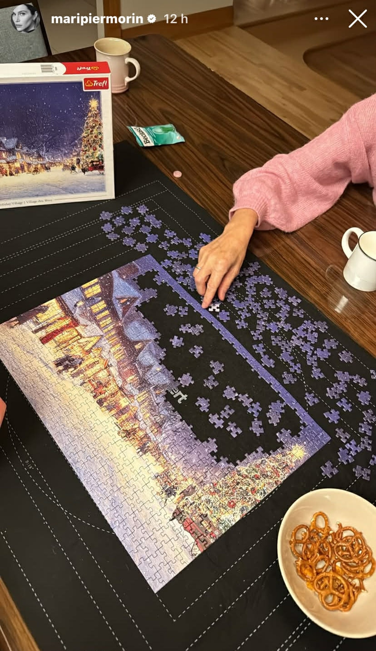 La maman de deux enfants s’est occupée en faisant un casse-tête de Noël de 500 pièces.