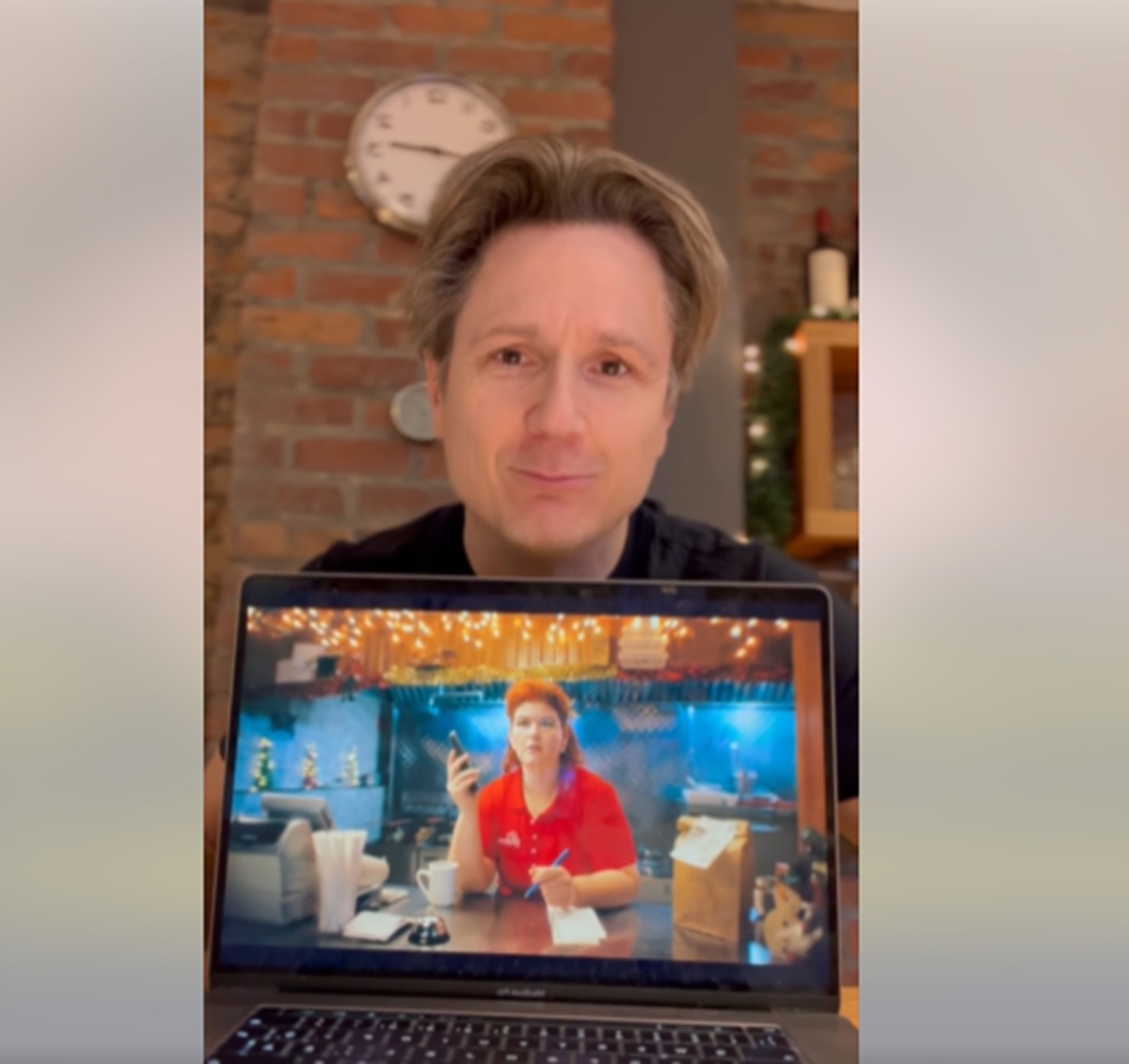 « Hey, je sais que ce n’est pas supposé… Et puis je ne veux pas parler en mal de mes anciens collègues ou quoi que ce soit mais je veux vous faire ma critique du 31 décembre. La pus sincère possible. Faque… Le 31 décembre, ben je n’étais pas chez nous, j’ai rien vu encore de la soirée de télévision, mais j’ai juste vu un p’tit bout en fait pis c’était ça. Moi j’ai trouvé ça pas si pire. En tout cas, écoute. si jamais vous autres vous avez aimé aussi… peut-être… J’vous conseille allez voter! Allez votre sur le site Bye bye de la pub. Faque… allez voter! »