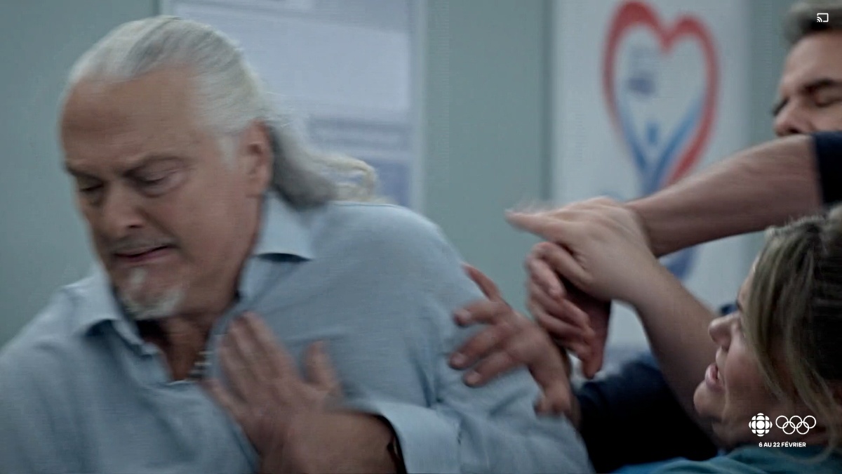 Heureusement, il a été sauvé par un courageux pompier, interprété par nul autre que Patrice Godin. En effet, après avoir eu un rôle marquant dans Indéfendable, le comédien est de retour dans les petits écrans, en tant que patient à l’hôpital Saint-Vincent. Malheureusement, son personnage a un malaise après avoir sorti Siméon.