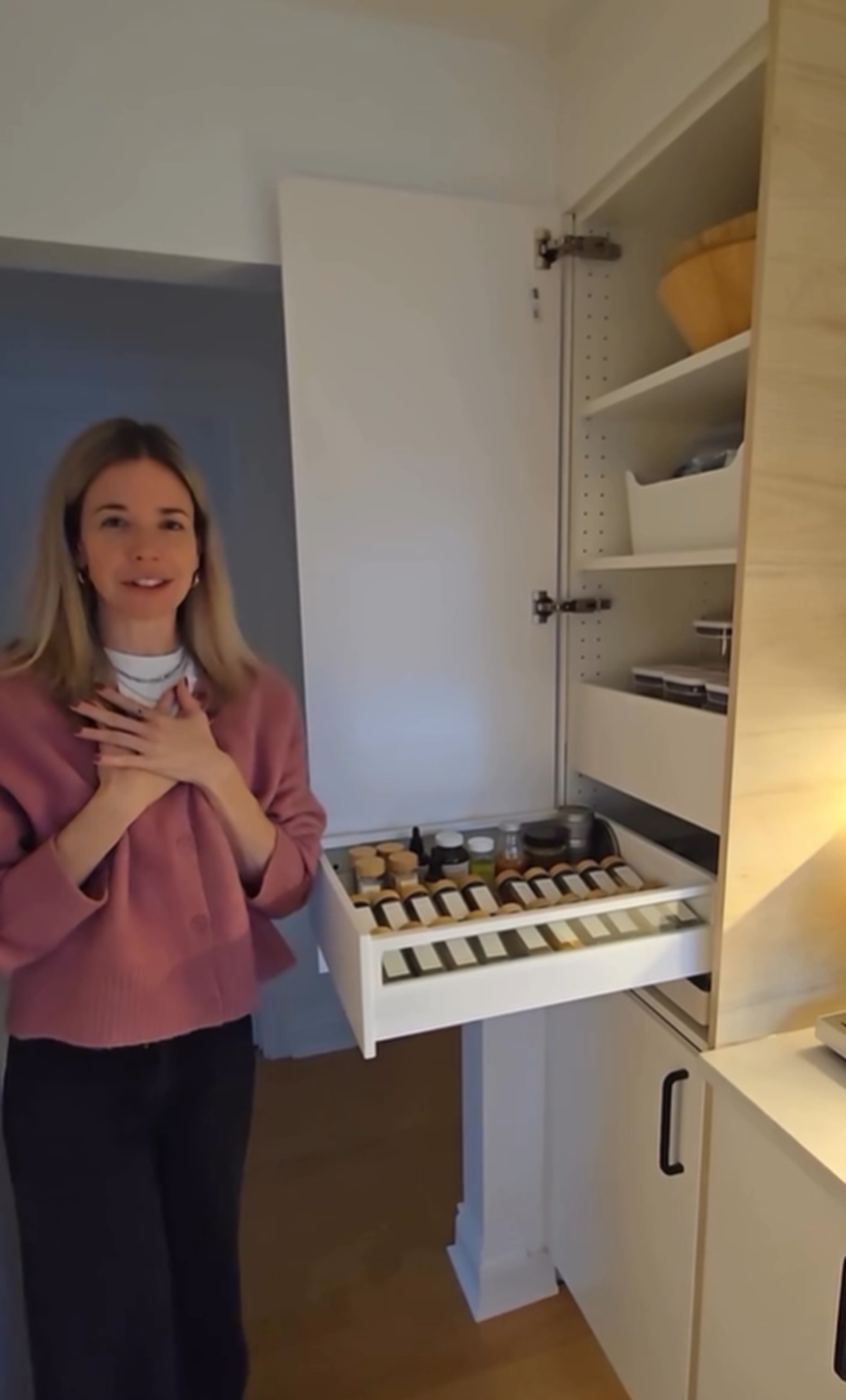 La réorganisation est efficace et elle est vraiment contente de son rangement pour les épices.