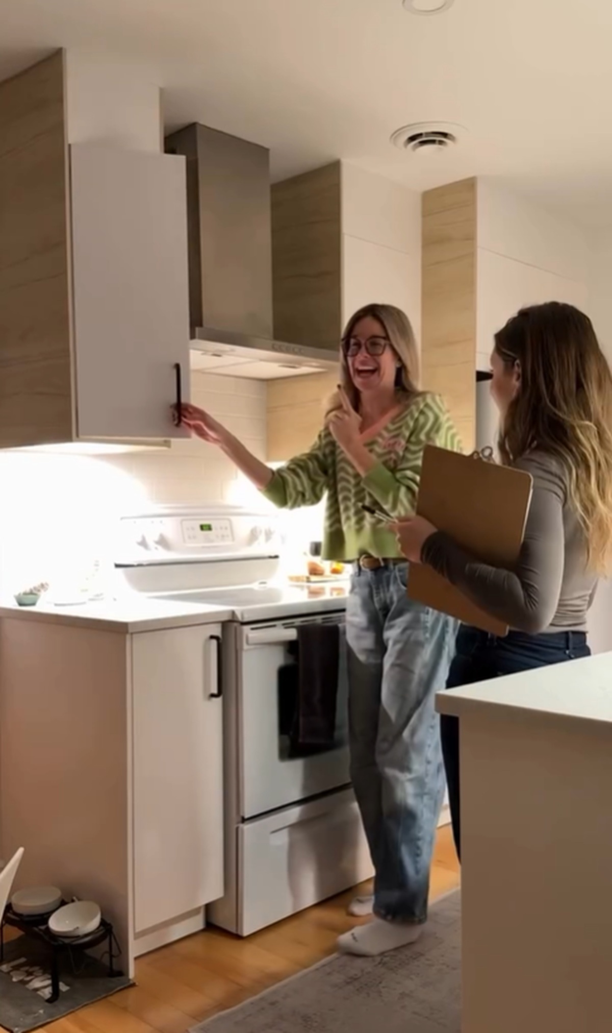 Dans une vidéo mise en ligne dans les dernières heures, la femme âgée dans la trentaine accueille une professionnelle de Symétrie pour réorganiser la cuisine de son condo.