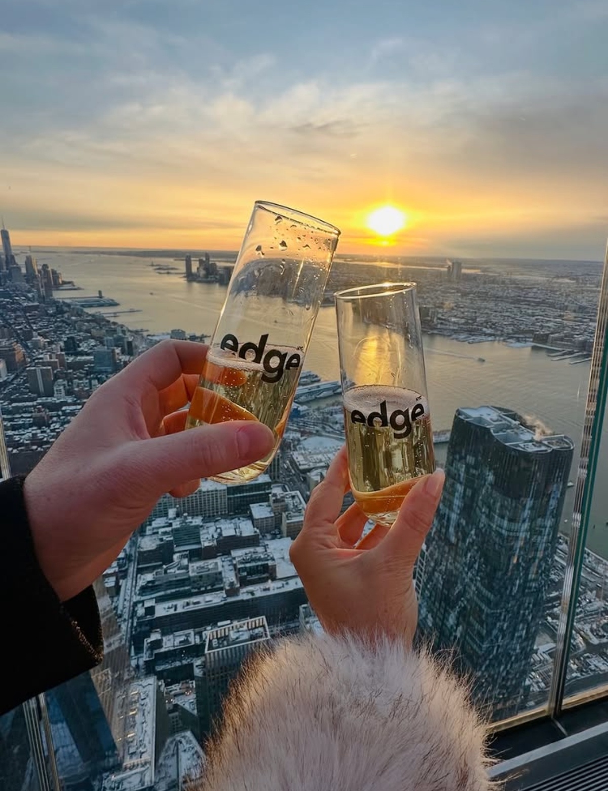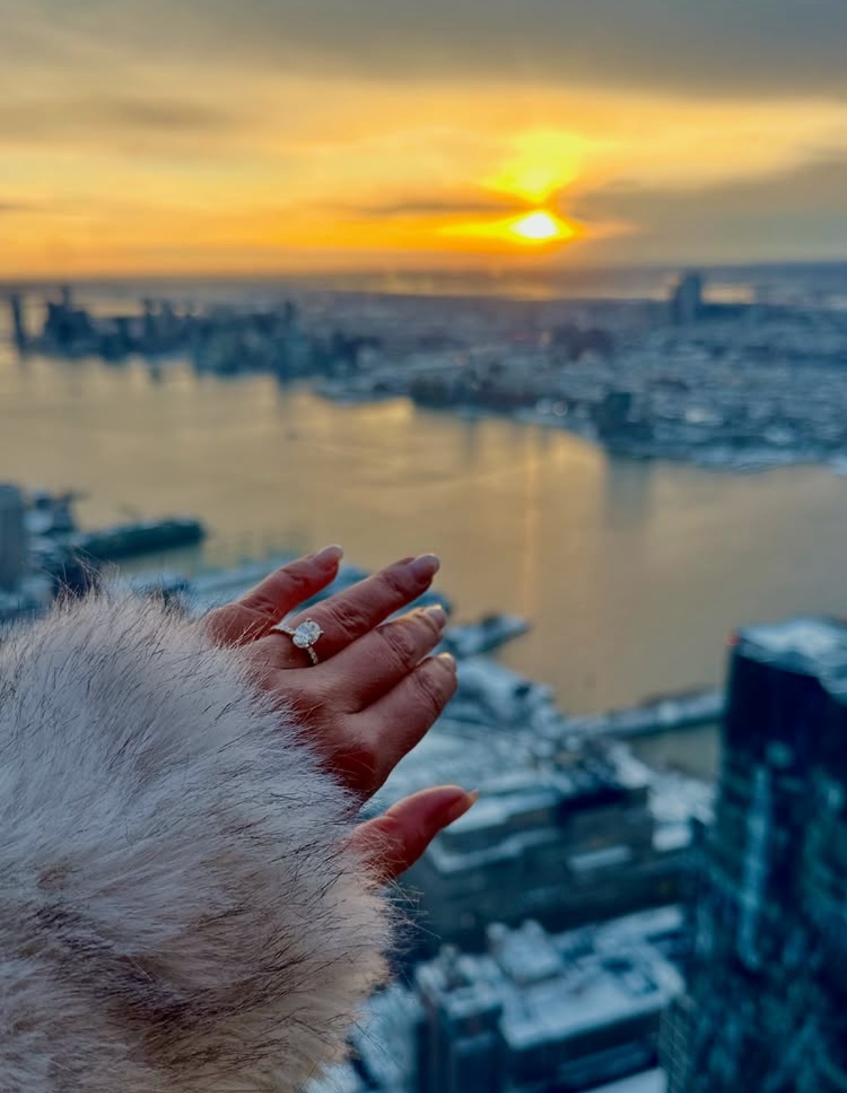 « And just like that…« Et c’est ainsi que, quelque part en décembre dernier, entre le ciel de New York et une coupe de champagne, mon amoureux m’a offert la plus belle des surprises! 💍🥂 »
