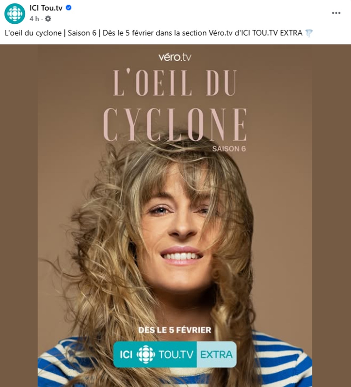 « L’œil du cyclone | Saison 6 | Dès le 5 février dans la section Véro.tv d’ICI TOU.TV EXTRA 🌪️ »