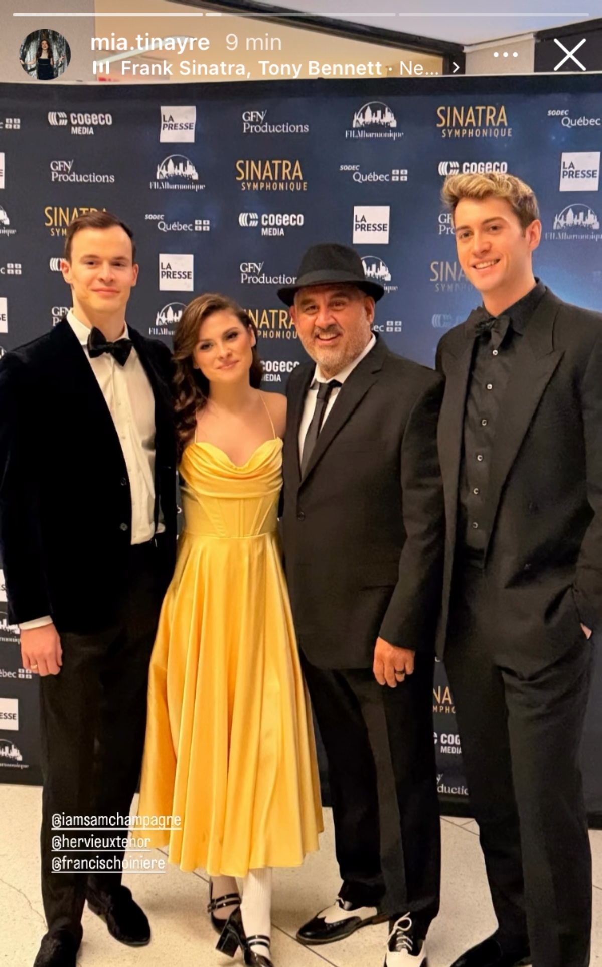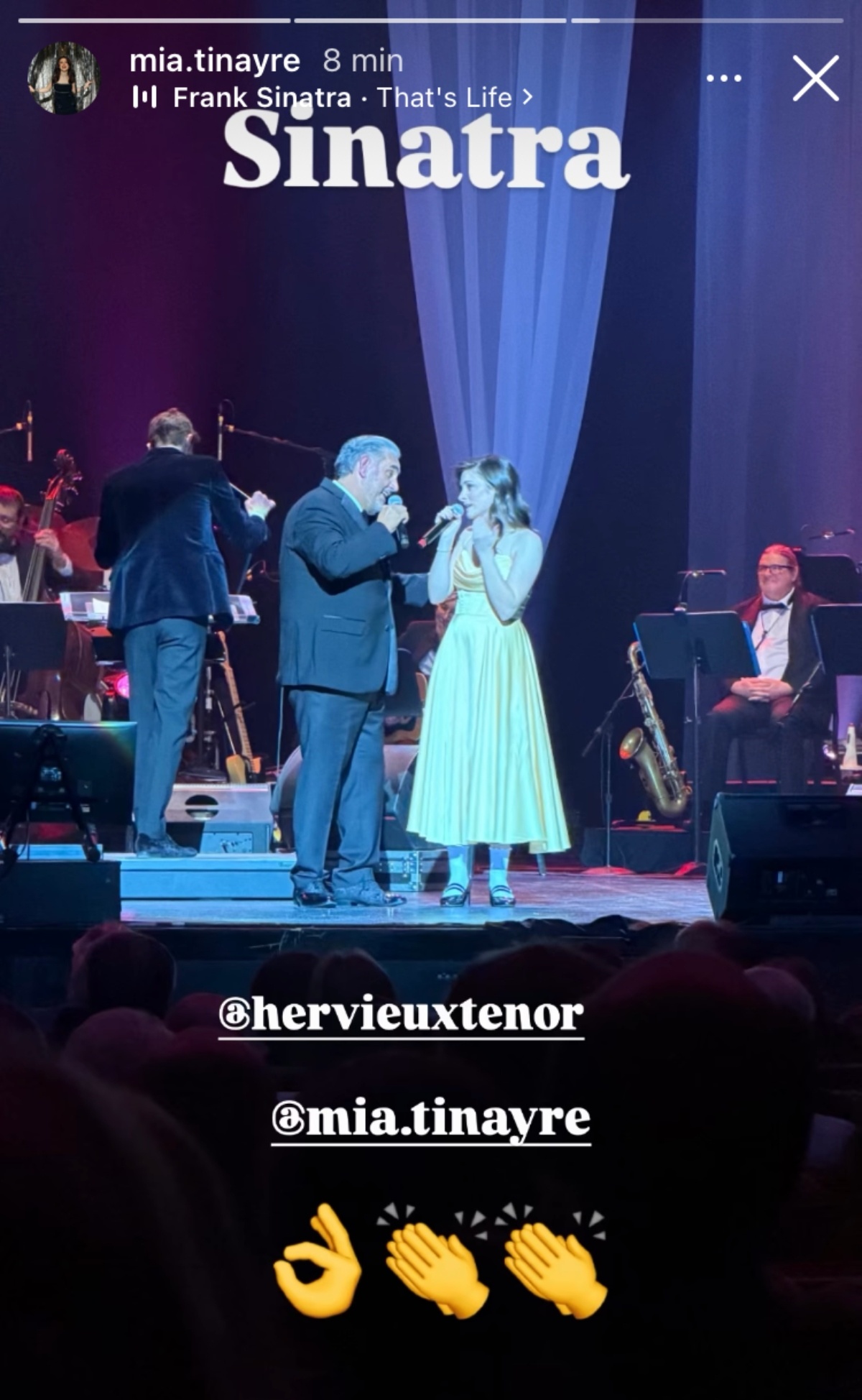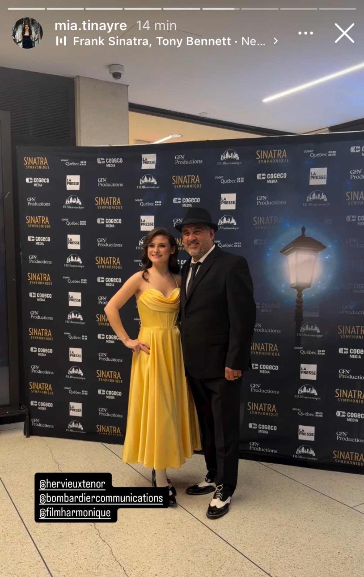Mia Tinayre a débuté sa tournée de spectacle avec Marc Hervieux. En effet, la gagnante de Star Académie 2025 a été sélectionnée pour remplacer Marie-Eve Janvier pour le spectacle Sinatra Symphonique. Il s’agit d’un concert qui revisite les plus grands succès de Frank Sinatra. La première représentation a eu lieu au cours des dernières heures à la salle Wilfrid-Pelletier de Montréal. Pour cette occasion, Mia Tinayre a pris la pose devant les caméras dans une magnifique robe.
