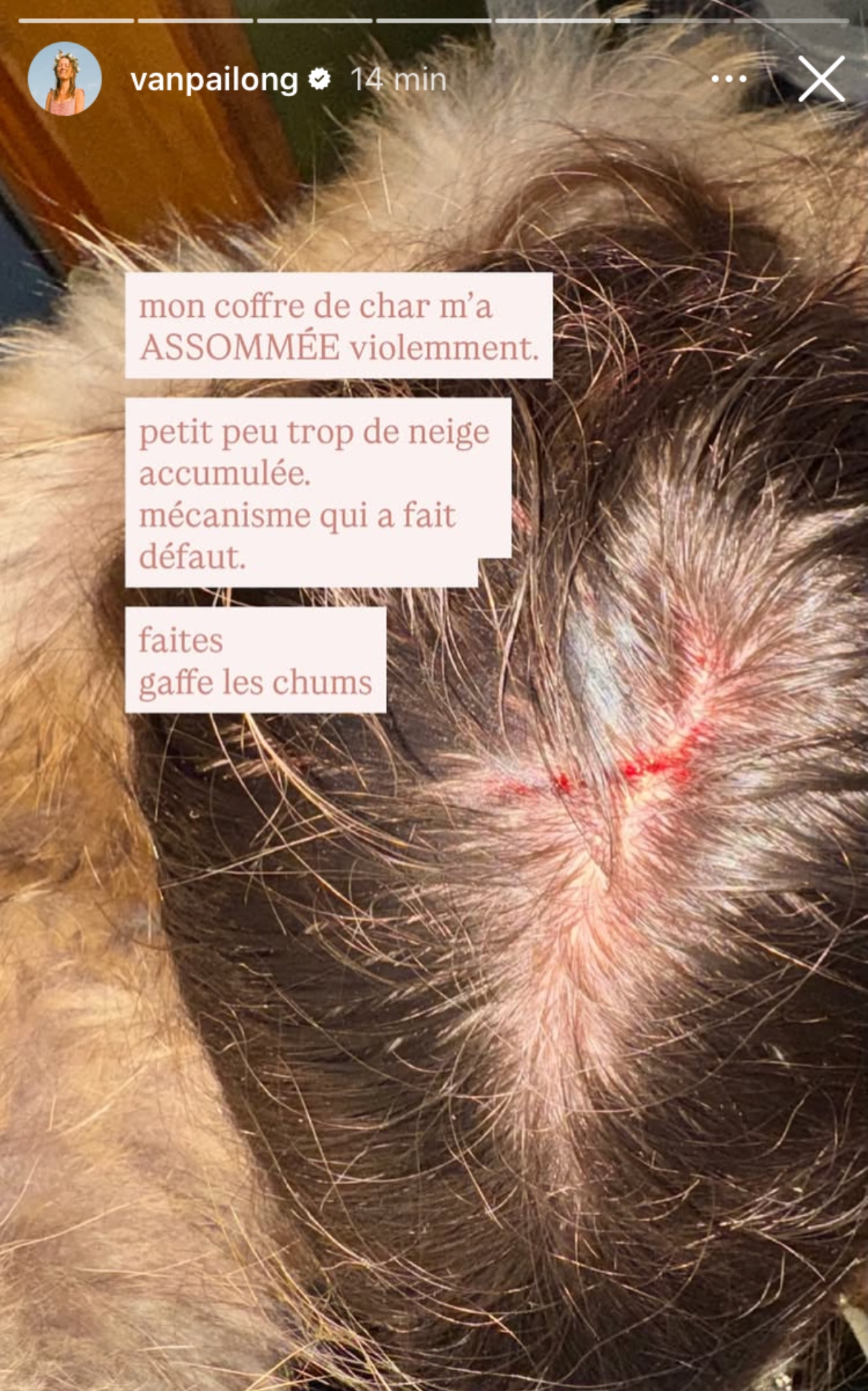 La porte de son coffre de voiture lui est tombée sur la tête en raison du mécanisme qui a fait défaut. Cela a ouvert son crâne et Vanessa Pilon souffre désormais d’une commotion cérébrale.