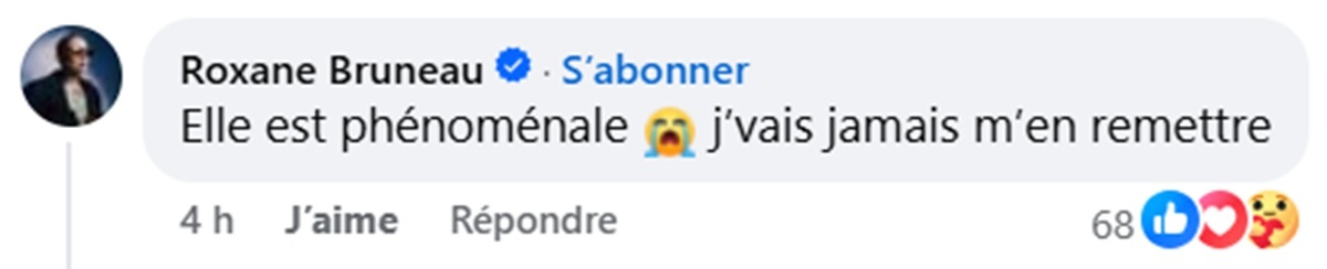 Même la coach Roxane Bruneau a laissé un commentaire sous la publication dédiée la participante Rosemarie :